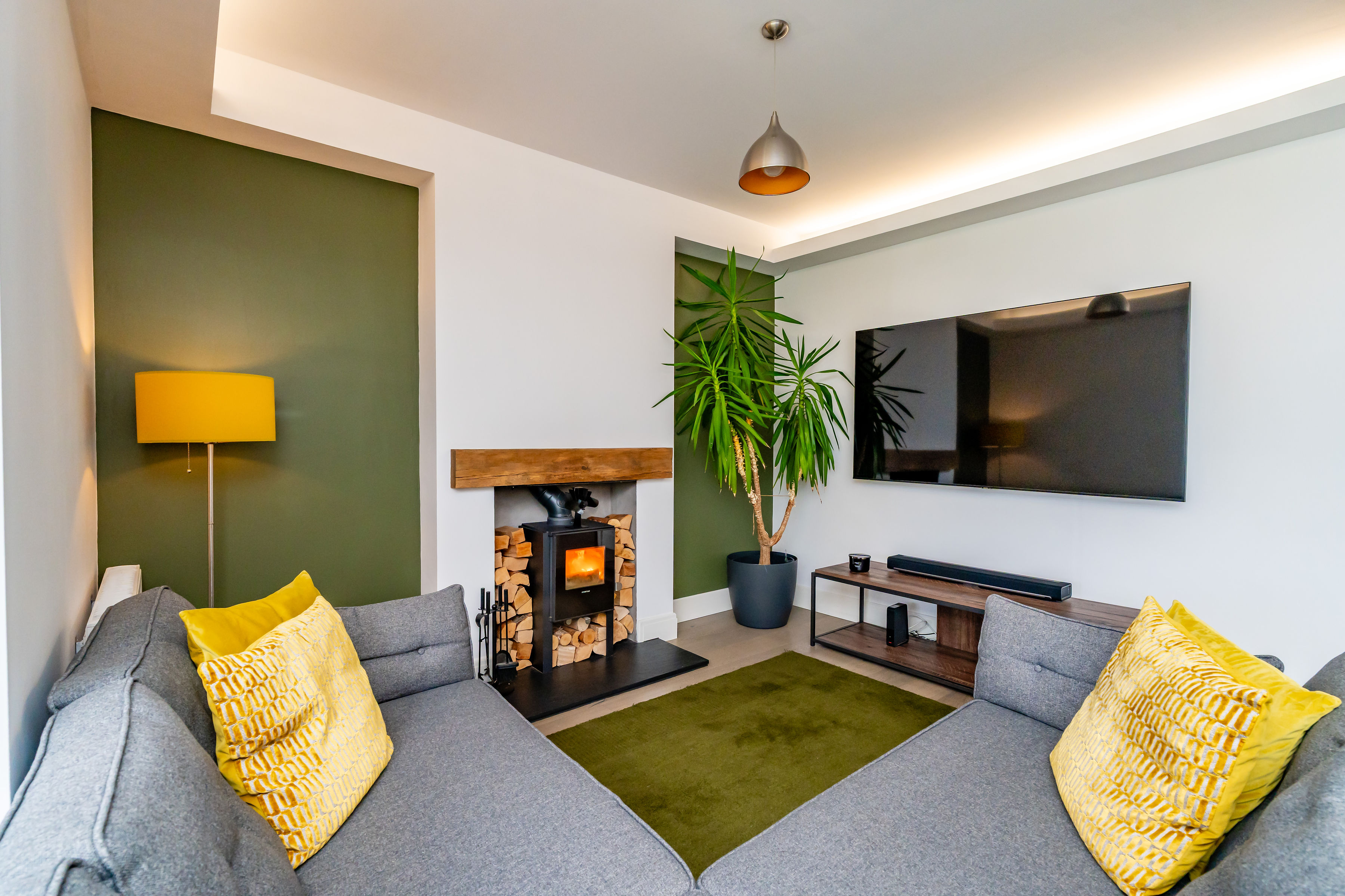 Set back from the road, the home is approached via a large private driveway with electric gate, ample parking for multiple vehicles, as well as an EV charging point for added convenience. Internally, the property has been comprehensively renovated to a high standard, with a carefully considered layout and cohesive, modern styling throughout.