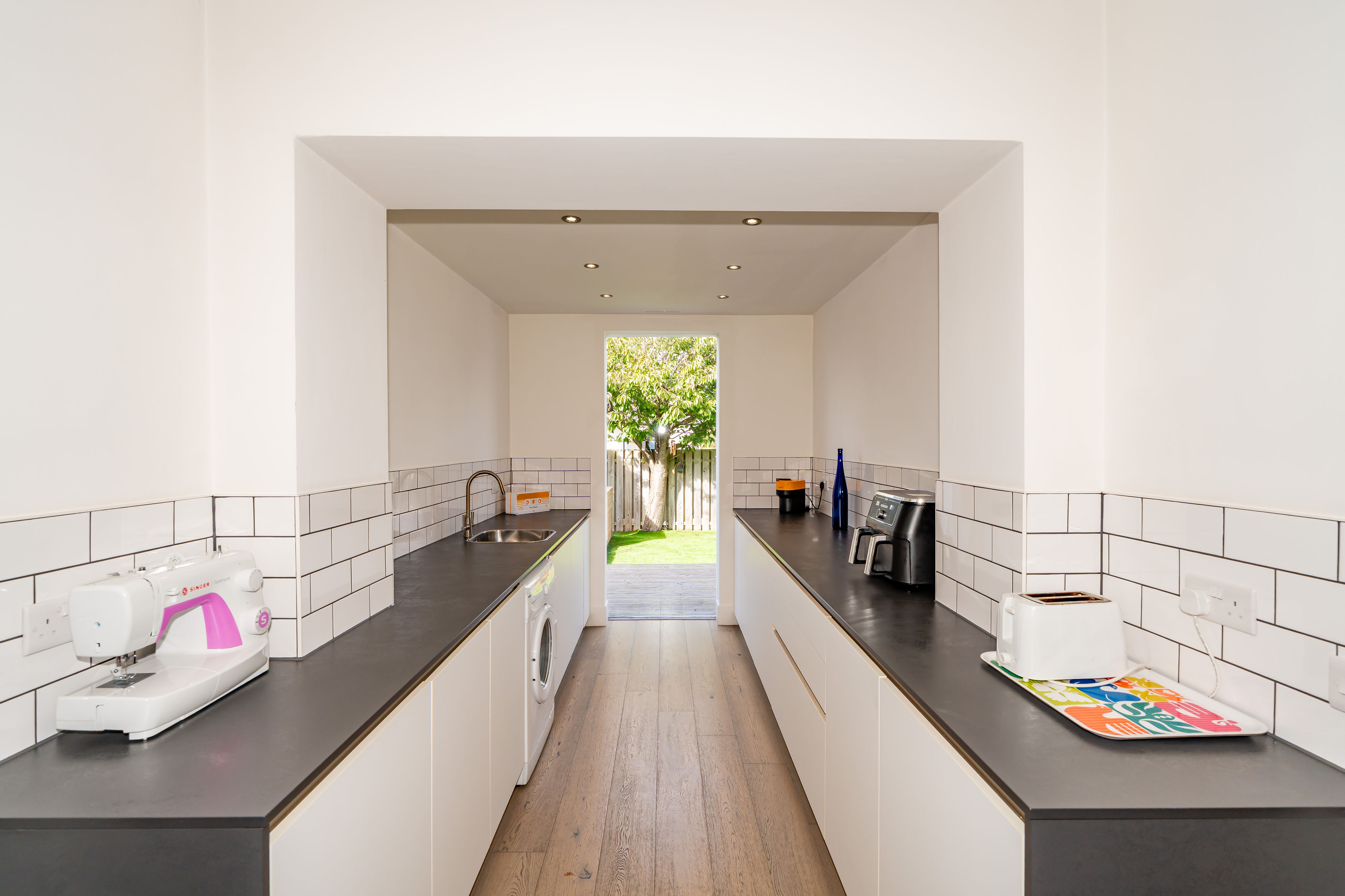 All blinds, light fittings, fitted flooring, and white goods are included in the sale price.