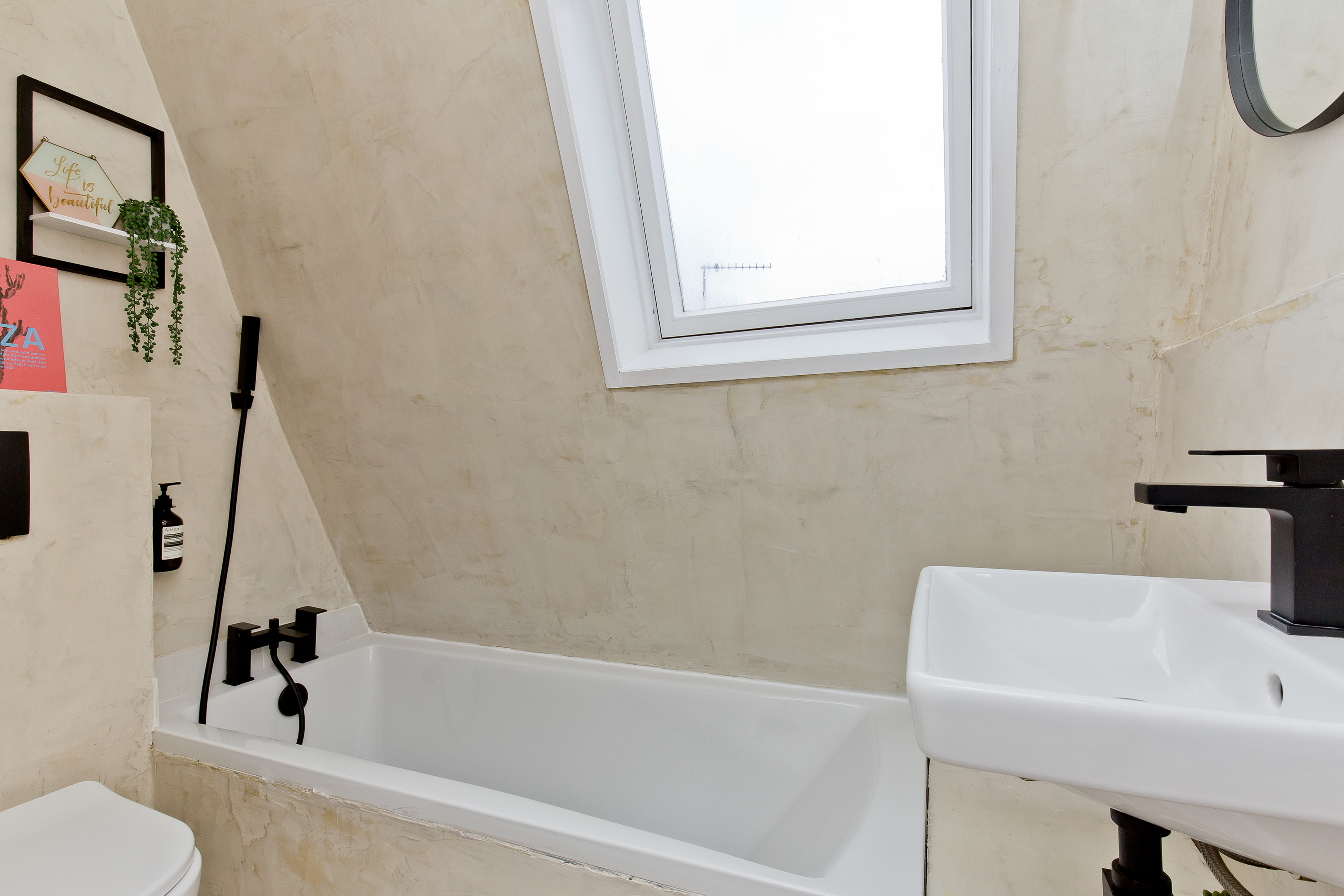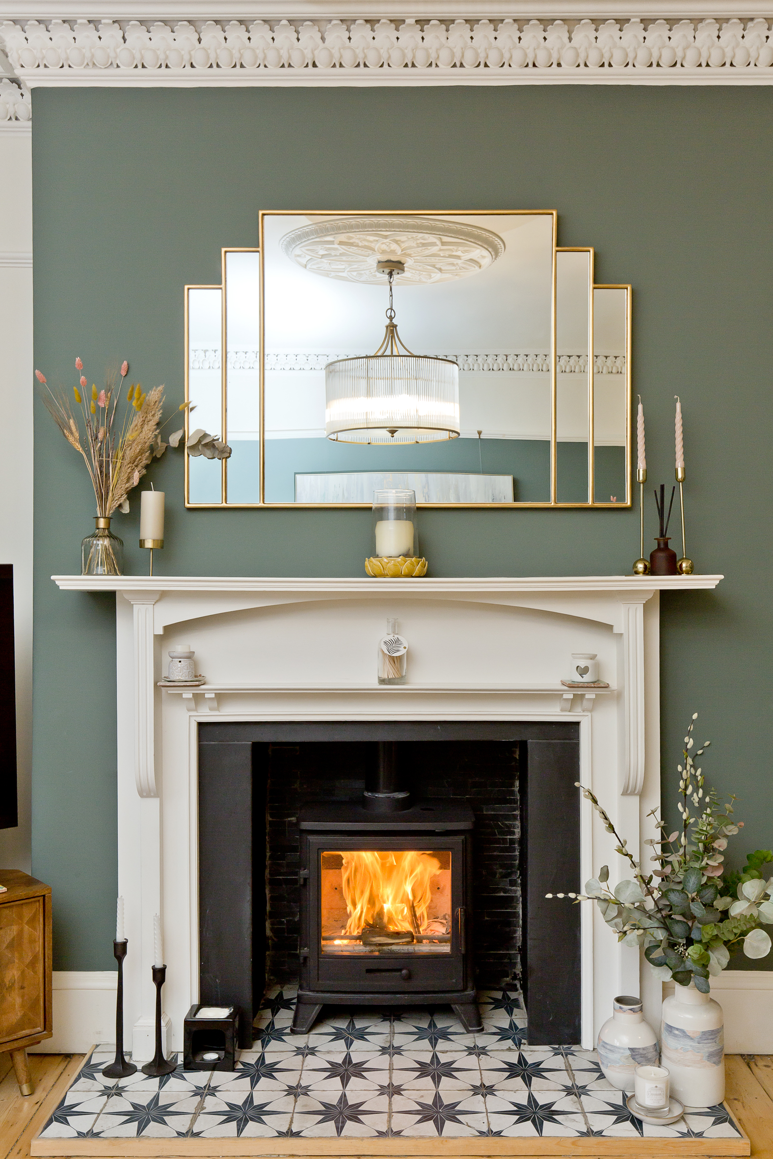The first floor hosts an exquisite drawing room occupying the full width of the property. Bathed in natural light from twin windows, this elegant space retains a wealth of period detailing, including ornate cornicing and a feature fireplace with wood-burning stove. Also on this floor is the principal bedroom, a calm and generously proportioned retreat with excellent fitted storage and a luxurious en suite bathroom featuring a freestanding bath. A beautifully appointed boutique-style shower room also serves this level.