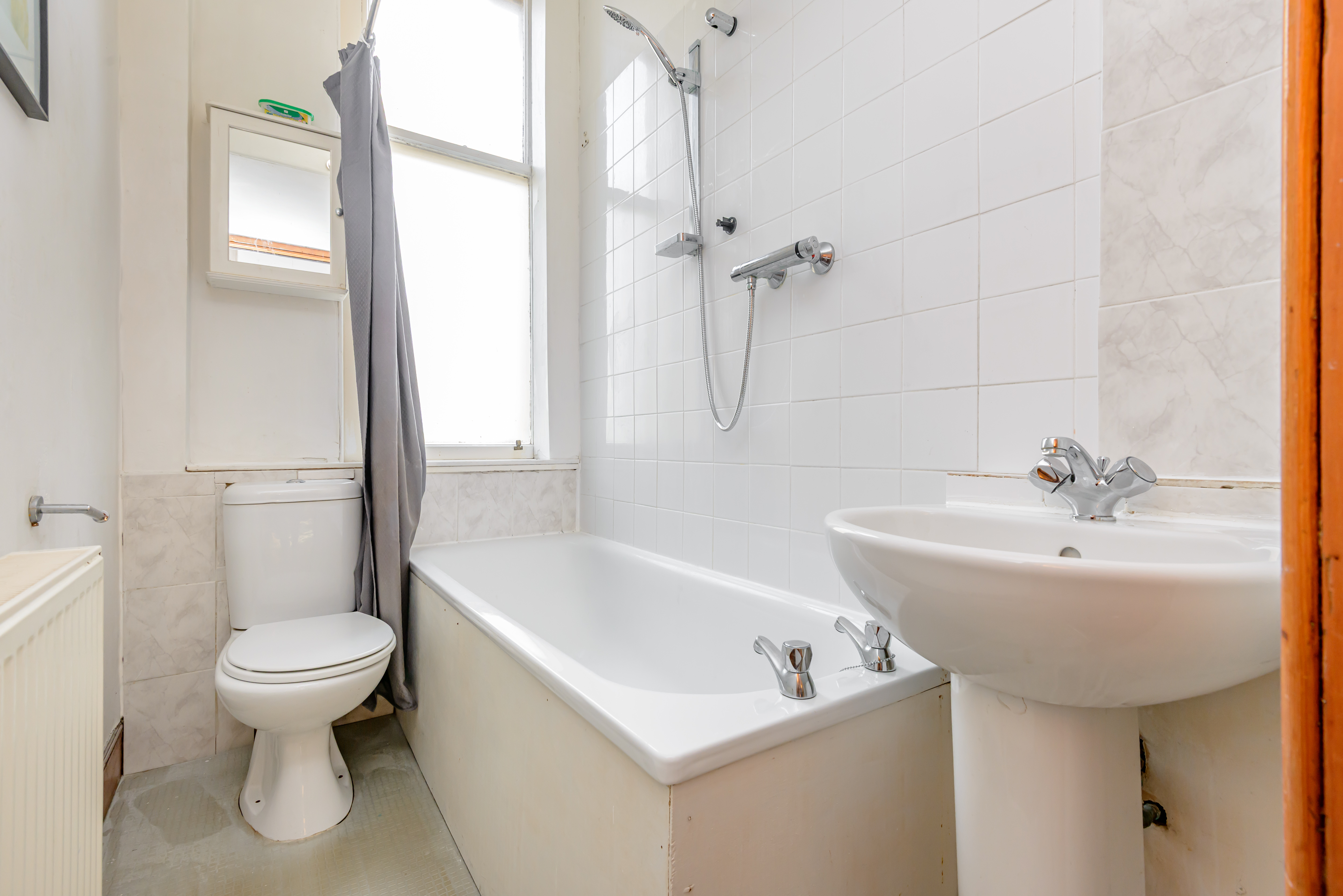 The accommodation, which is accessed via a secure shared entrance, comprises - hall with a storage cupboard off; bright sitting room/dining room/kitchen fitted with base and wall mounted units, all appliances and a large storage cupboard off; double bedroom 1 overlooking the front of the property; and bathroom fitted with a bath with shower above, wc and wash hand basin.