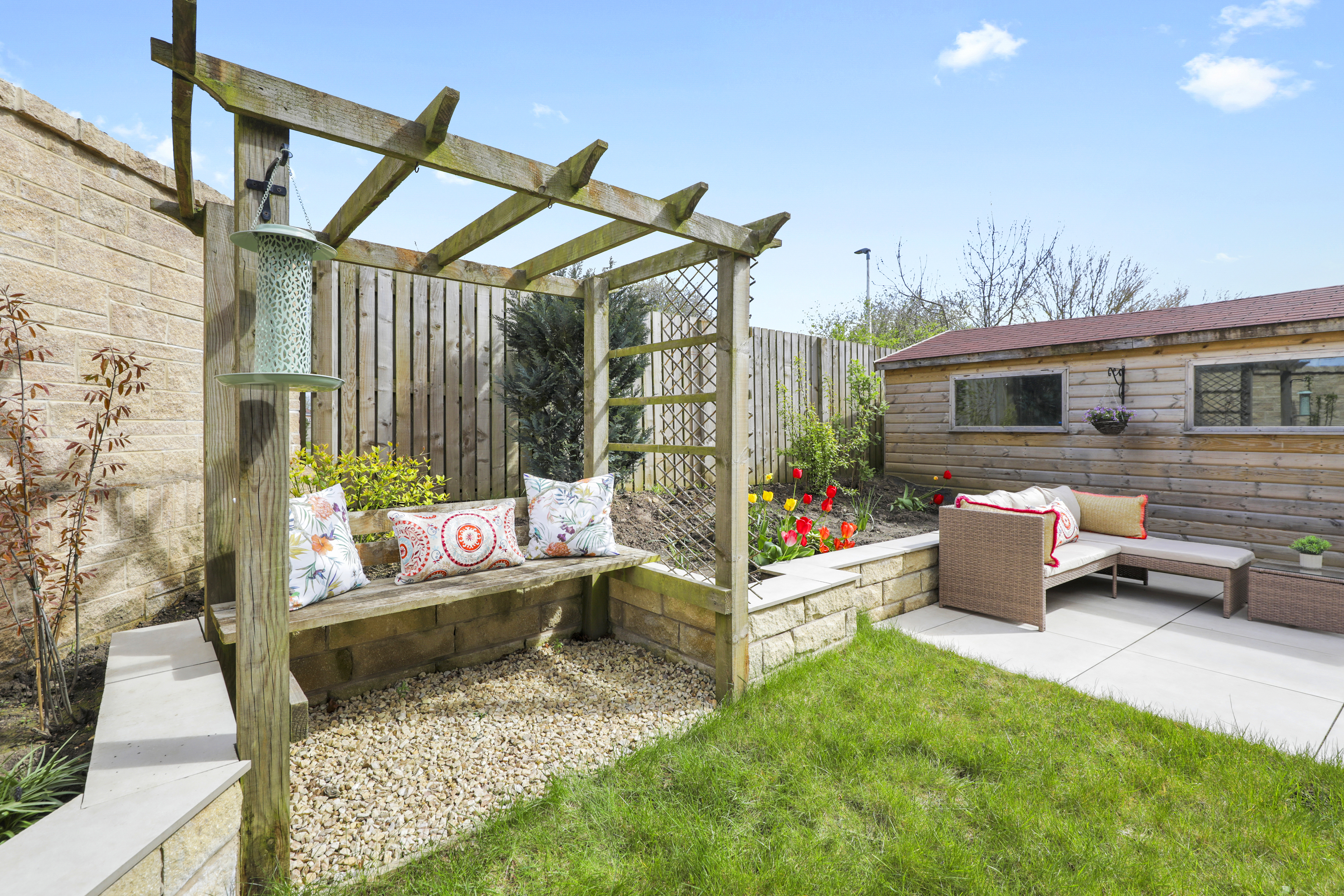 The wonderful rear garden has been landscaped to provide a fantastic entertaining space with a gazebo, patio, lawn and large garden shed with electricity, lighting and cupboards providing ample storage.