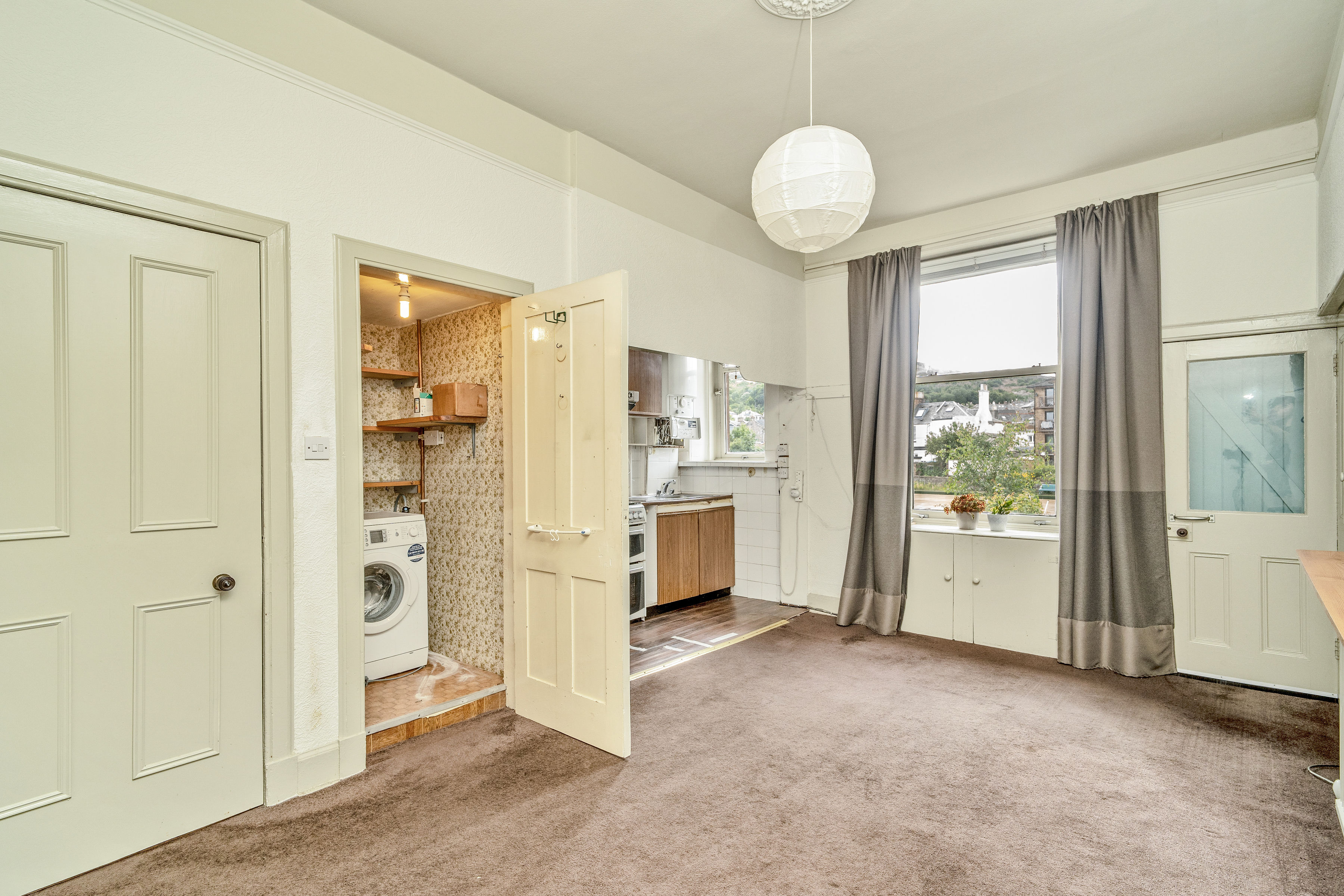 Set behind a private entrance, the flat occupies the entire first floor of a handsome stone-built property. Internally, it offers the scale and ceiling heights typical of its era, along with original features including ornate cornicing, a ceiling frieze, and timber detailing. While well maintained, the interiors now offer scope for thoughtful upgrades throughout.