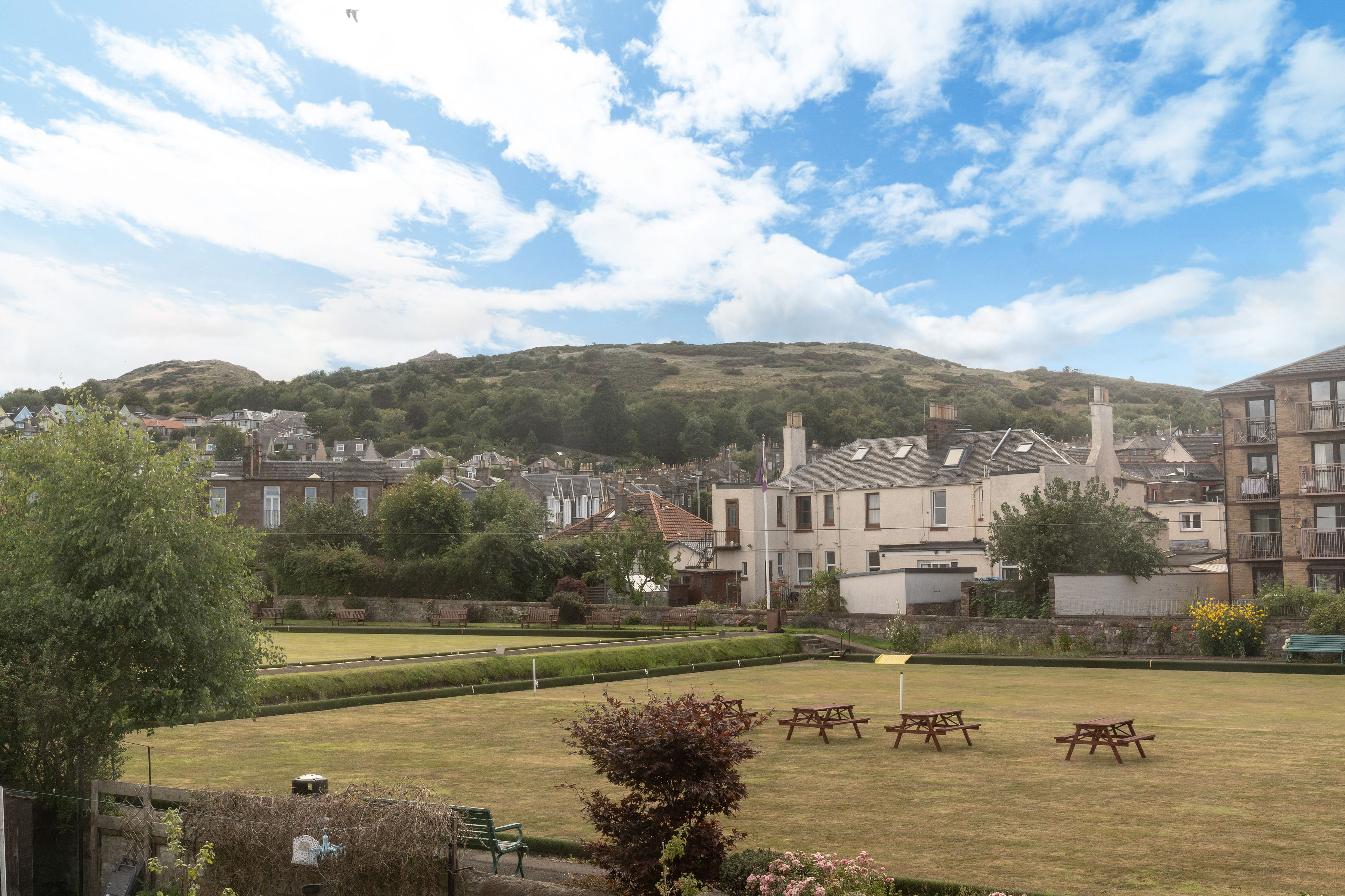 The main living space is a beautifully proportioned bay-windowed reception room, filled with natural light and complemented by a handsome fireplace and decorative cornice work. The spacious dining kitchen, positioned to the rear of the property, features a stable door to the garden and direct views to Arthur’s Seat.