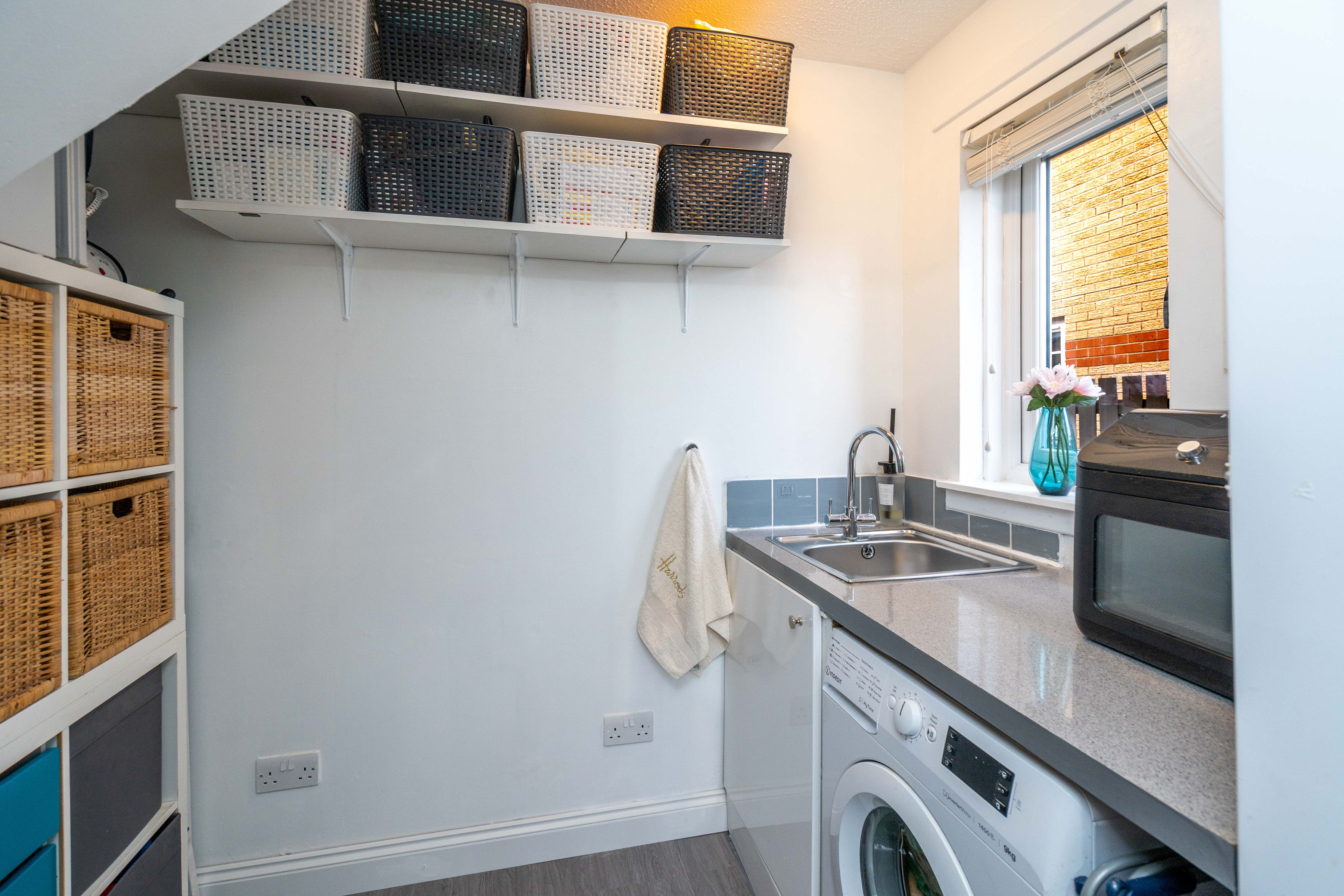 From the dining area, you are led into a well-appointed kitchen with an adjoining utility space with fantastic storage, providing further space for practical daily routines and also direct access out to the garden. The thoughtful layout ensures a natural flow between social and functional spaces, enhancing the enjoyment of family life.