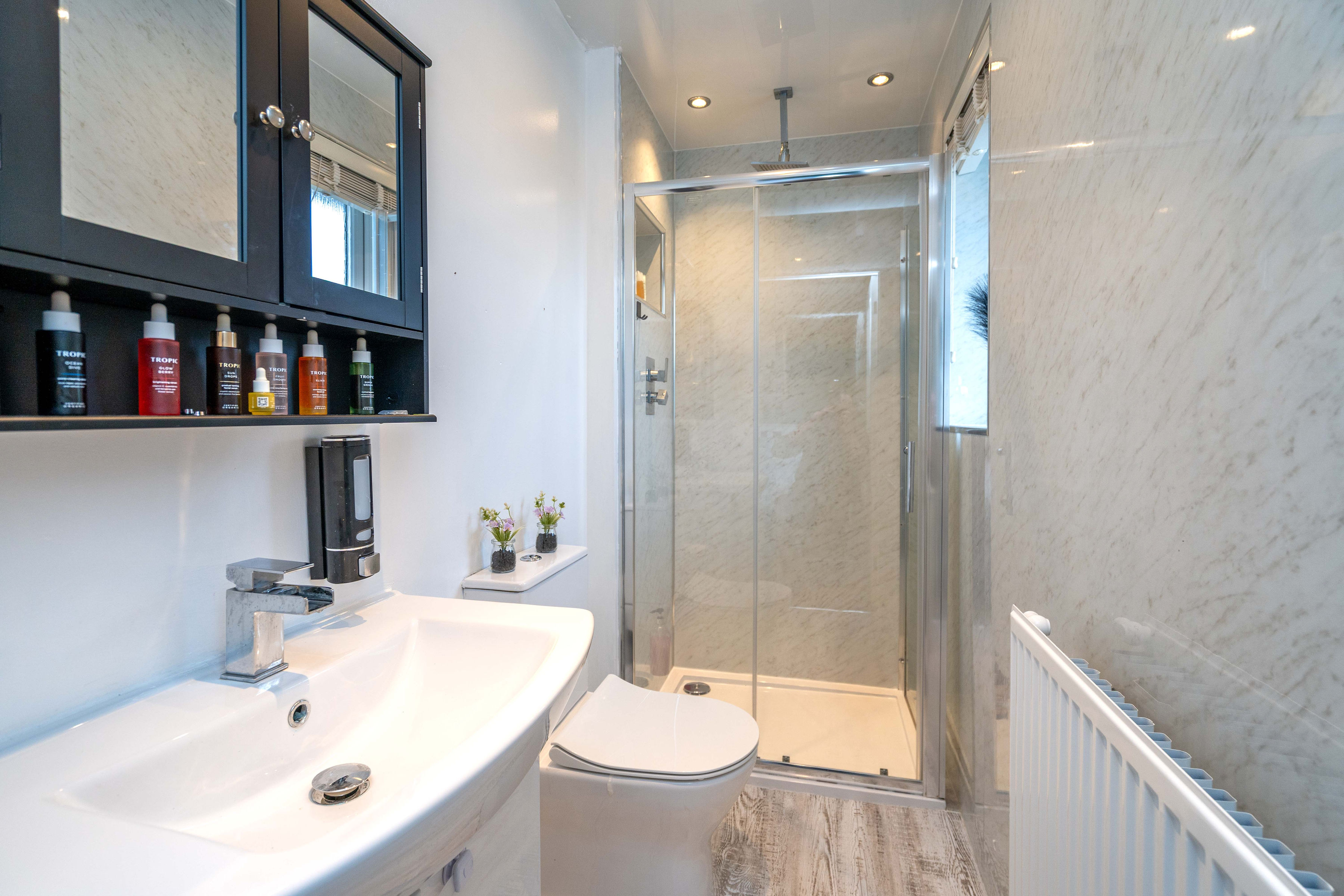 The accommodation comprises four well-proportioned bedrooms, with three located on the first floor, including a superb principal bedroom with its own en-suite, together with a stylish family bathroom. Downstairs there is a further double bedroom with an en-suite, providing flexible accommodation ideal for guests, multigenerational living or a private home office.