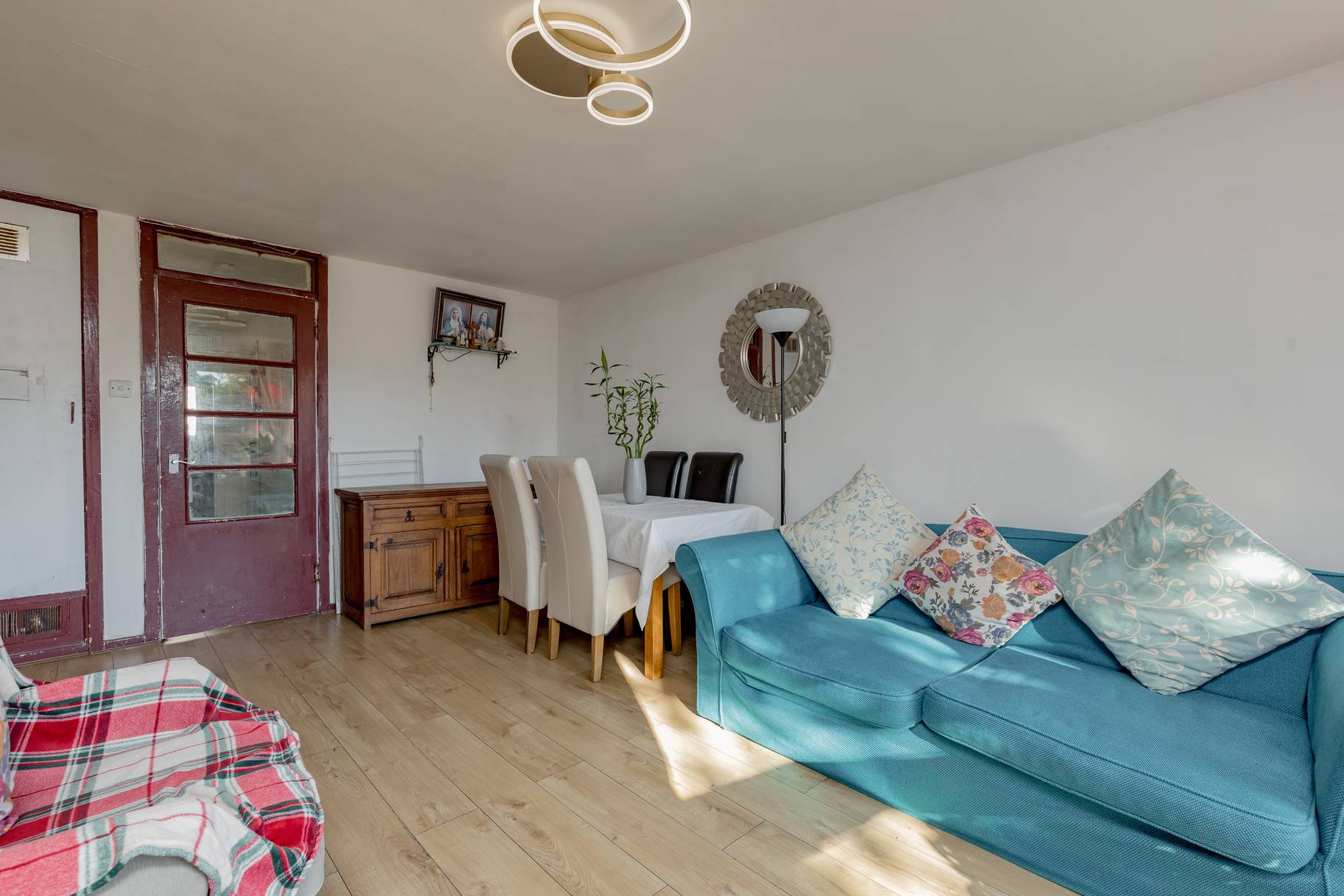 All blinds, light fittings, fitted flooring and integrated appliances are included in the sale price.