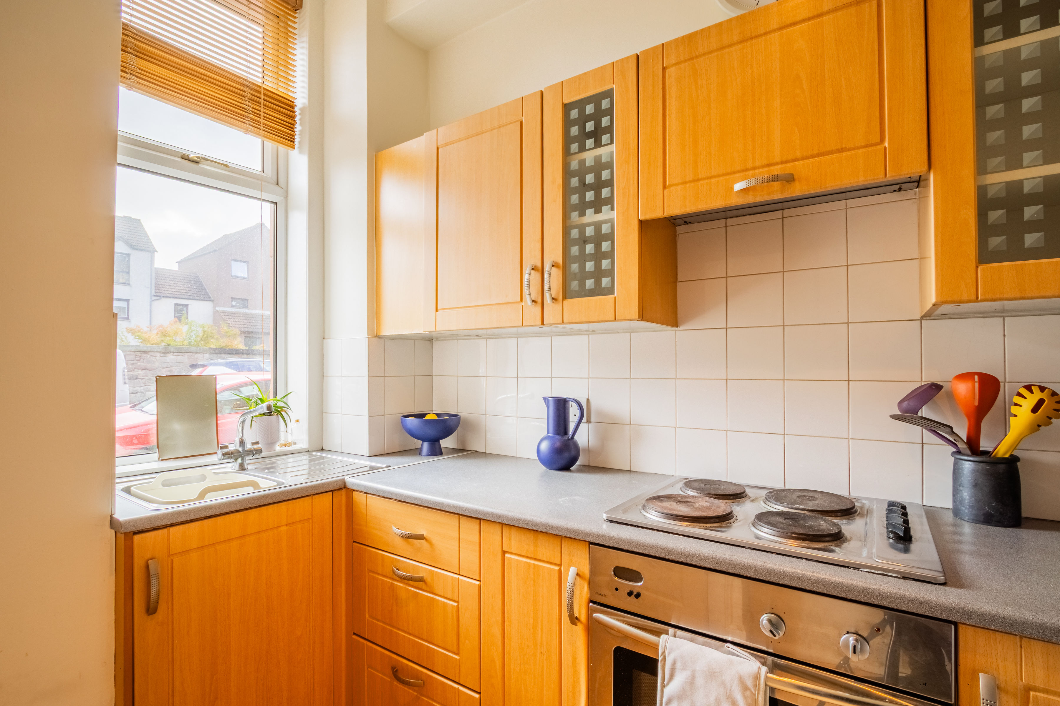 46 Kings Road is a delightful ground floor studio flat with its own private main door entrance, ideally located in the popular seaside suburb of Portobello. The property combines modern comfort with coastal charm, featuring an attractive open-plan layout where the living, dining, and kitchen areas flow together seamlessly. The sleeping area is cleverly sectioned off, creating a distinct and private space that adds to the home’s versatility and sense of comfort. A well-appointed bathroom completes the interior, while large windows ensure the flat is filled with natural light throughout the day.