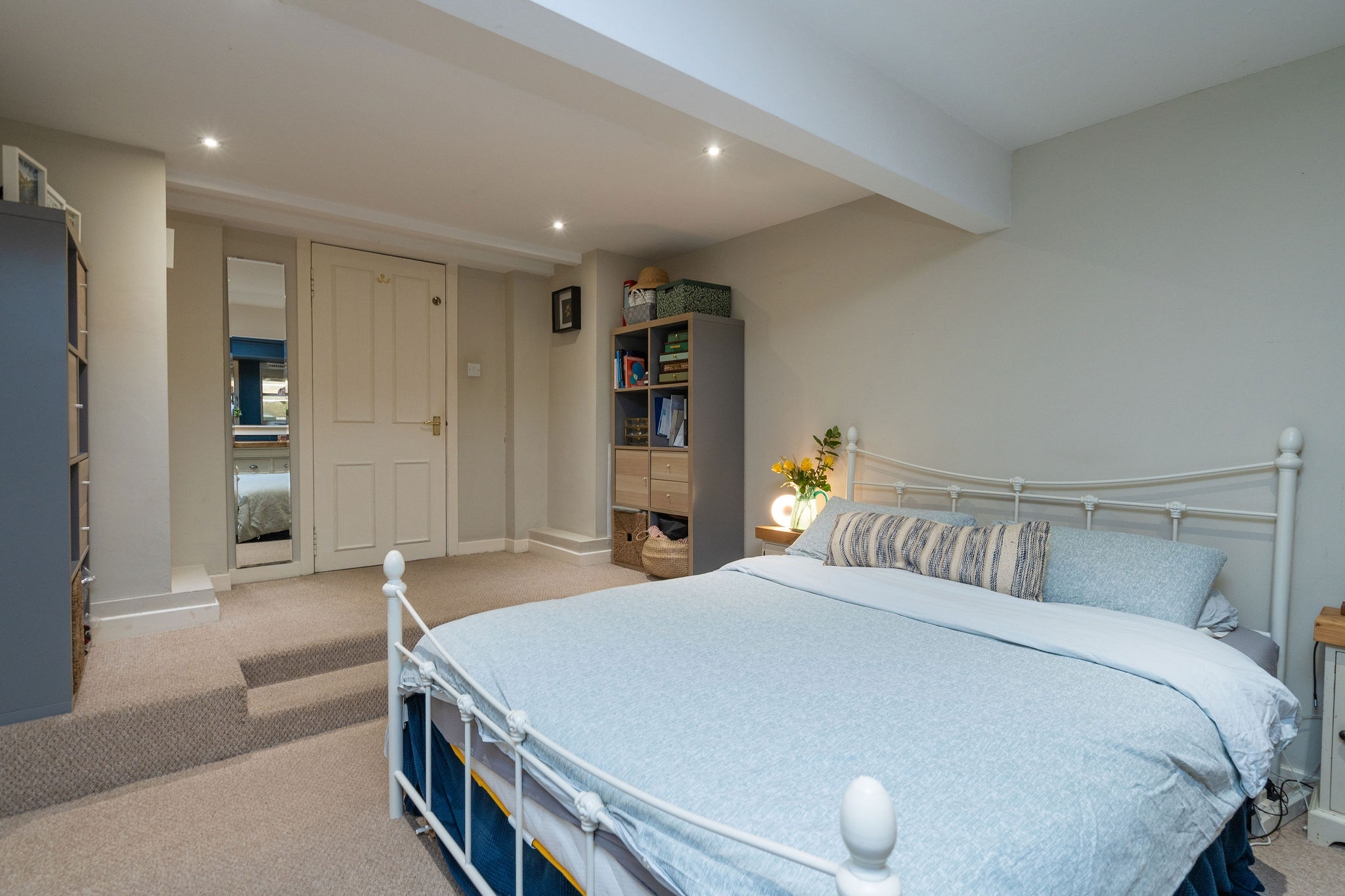 The principal bedroom, also located on the lower level, provides a luxurious and tranquil retreat. It is complemented by a generous walk-in wardrobe, offering ample storage without compromising the room's serene atmosphere. The fully tiled family bathroom has been finished to a high standard, featuring a full-sized bath with an overhead shower completes the accommodation on this level.