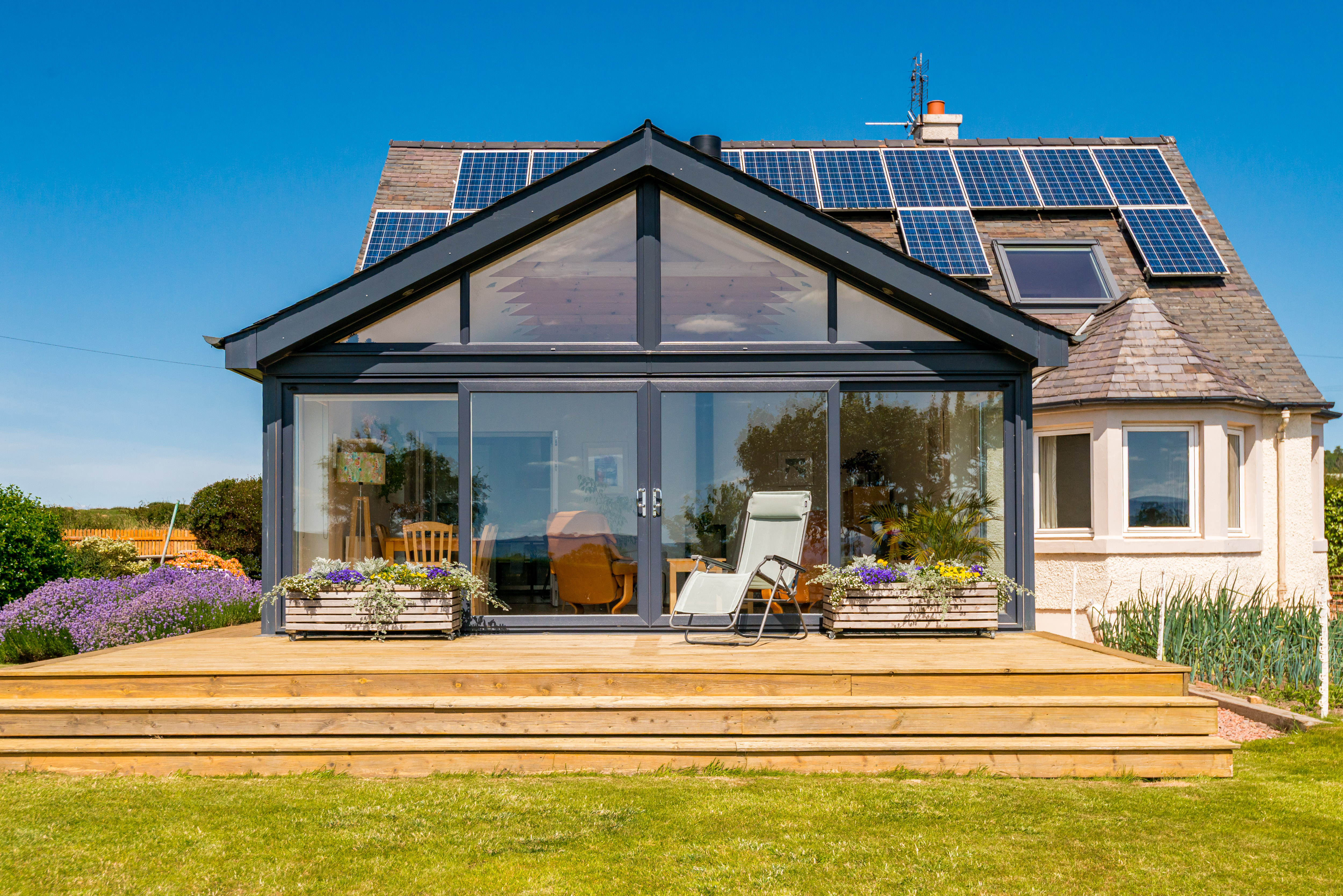 Heating is provided by a biomass boiler, serviced twice yearly, and the home is further enhanced by solar panels delivering efficient and sustainable energy.