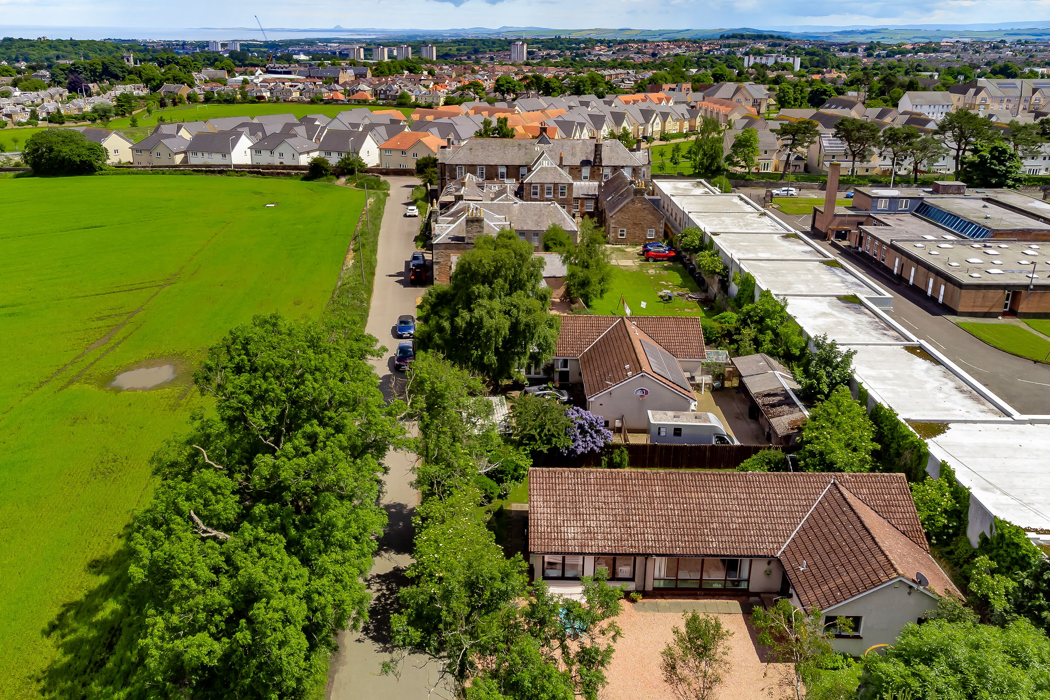 Externally, a private road leads to the grounds of the property with a well maintained wrap around garden and sheds for storage. Directly opposite the property is an open field with unobstructed views over to Edinburgh and on to Fife.
