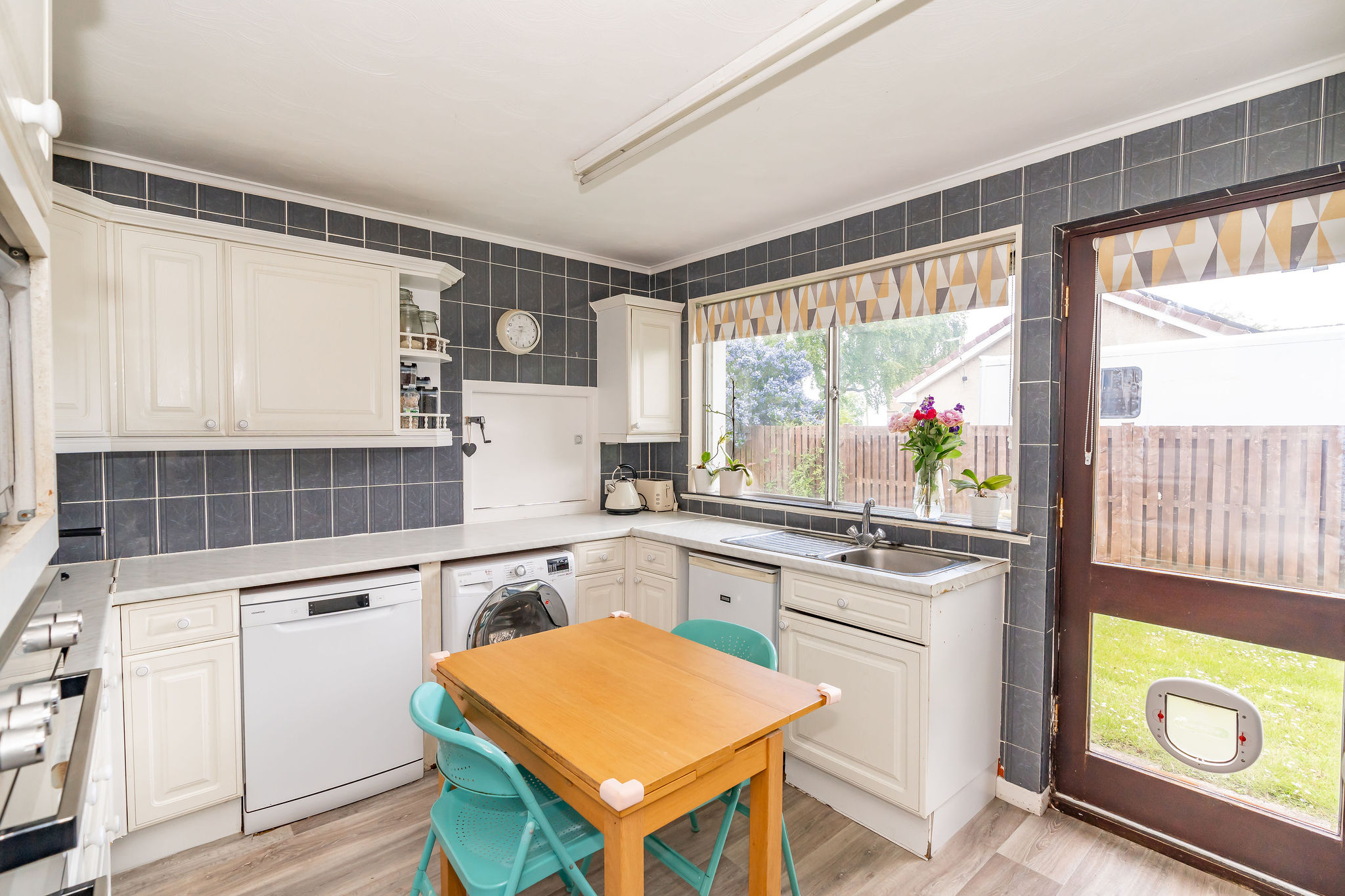 The blinds, curtains, light fittings, fitted floor coverings, integrated kitchen appliances are included in the sale price.