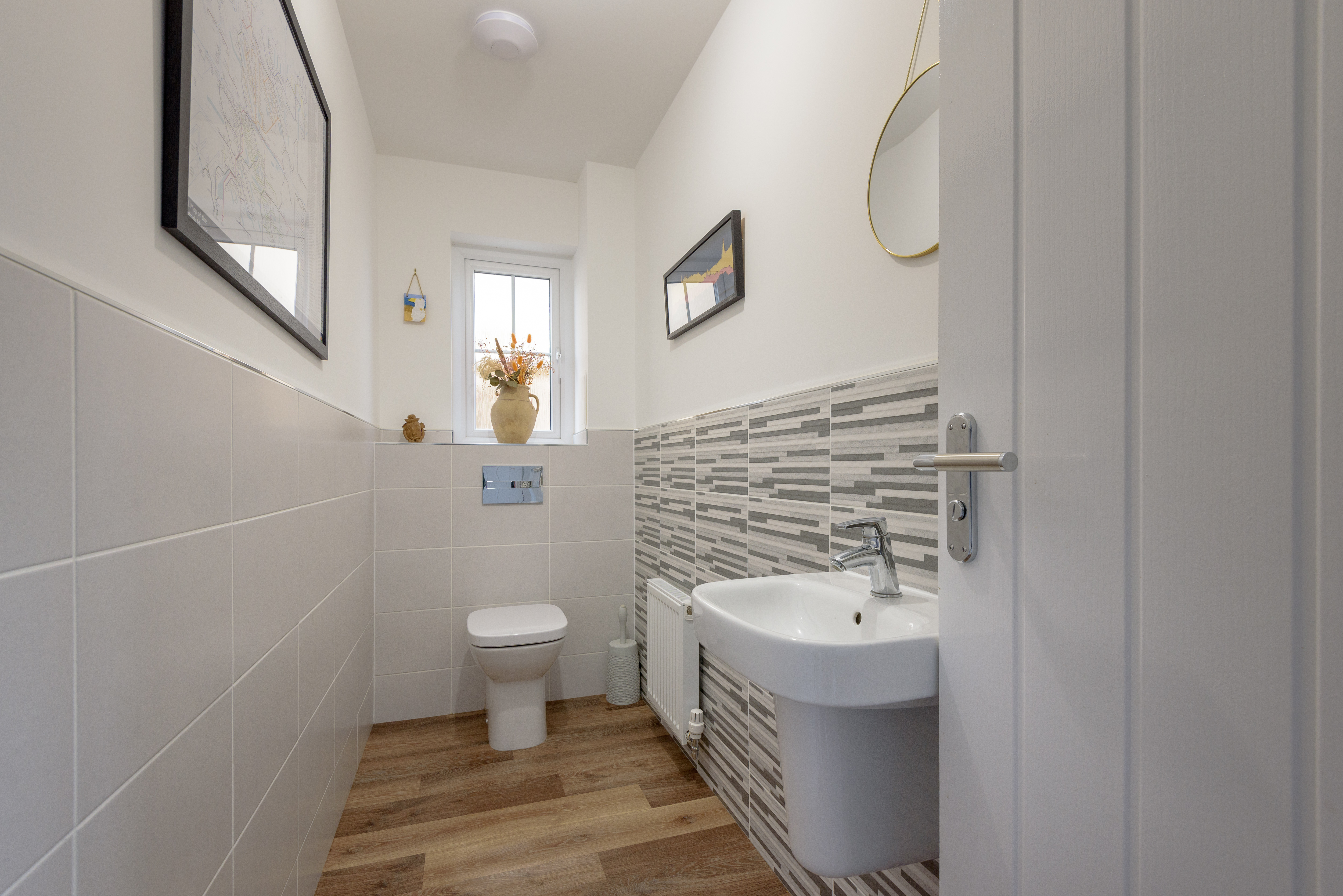 It comprises; welcoming entrance hallway with convenient WC and understairs storage cupboard; bright and well proportioned sitting room; a versatile playroom or study offering flexible living space; a light and spacious open plan kitchen/breakfast/dining room with breakfast bar, gas hob, double oven and integrated appliances. French doors open directly from the dining area onto the rear garden, ideal for entertaining. A separate utility room with large pantry cupboard and direct access to the rear garden completes the accommodation on this level.