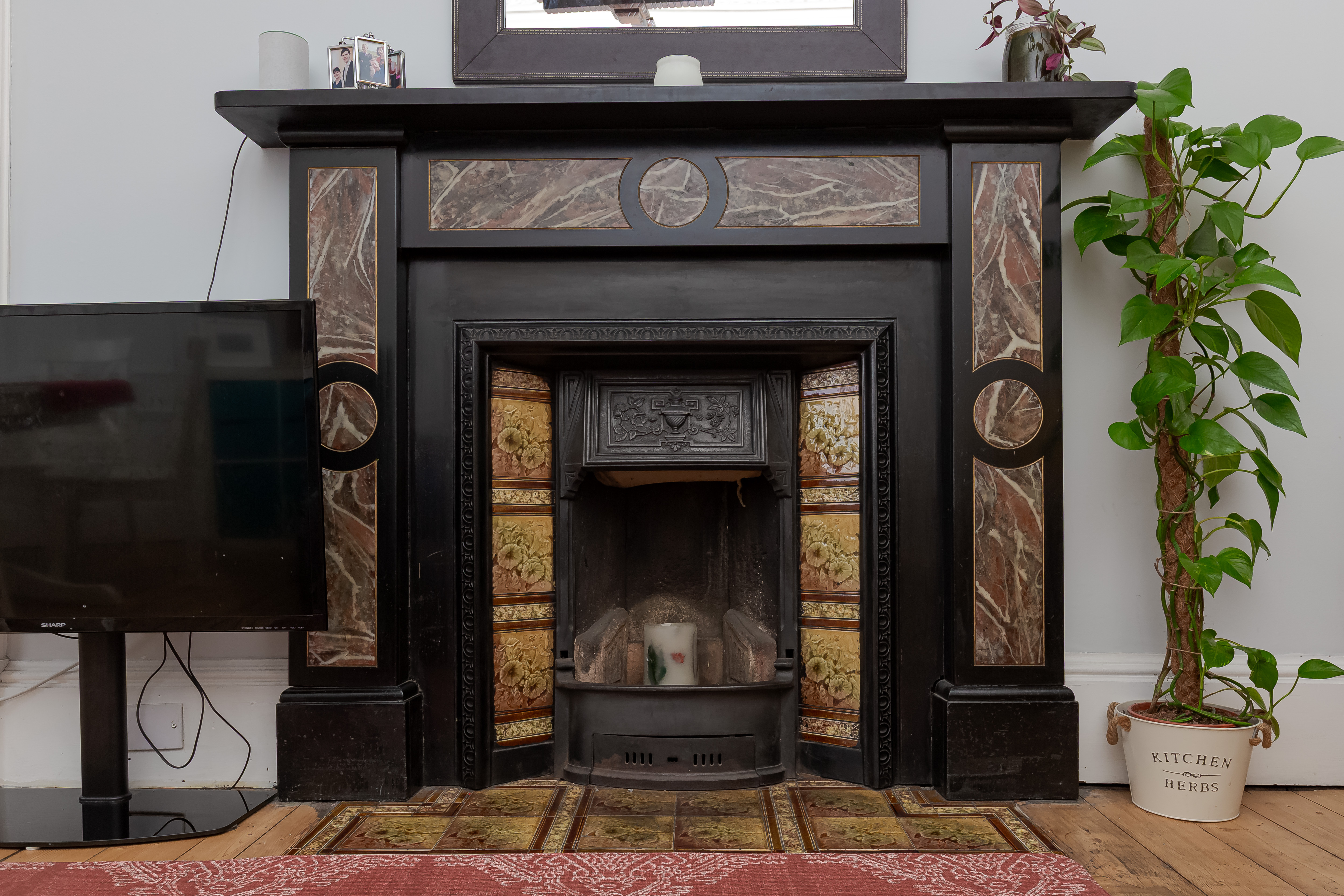 With a west facing outlook, the bay windowed sitting room is a warm and welcoming space. A beautiful fireplace forms an attractive focal point in the room, whilst cornice work and wood panelling add charm and character. A press cupboard is in the corner of the room.