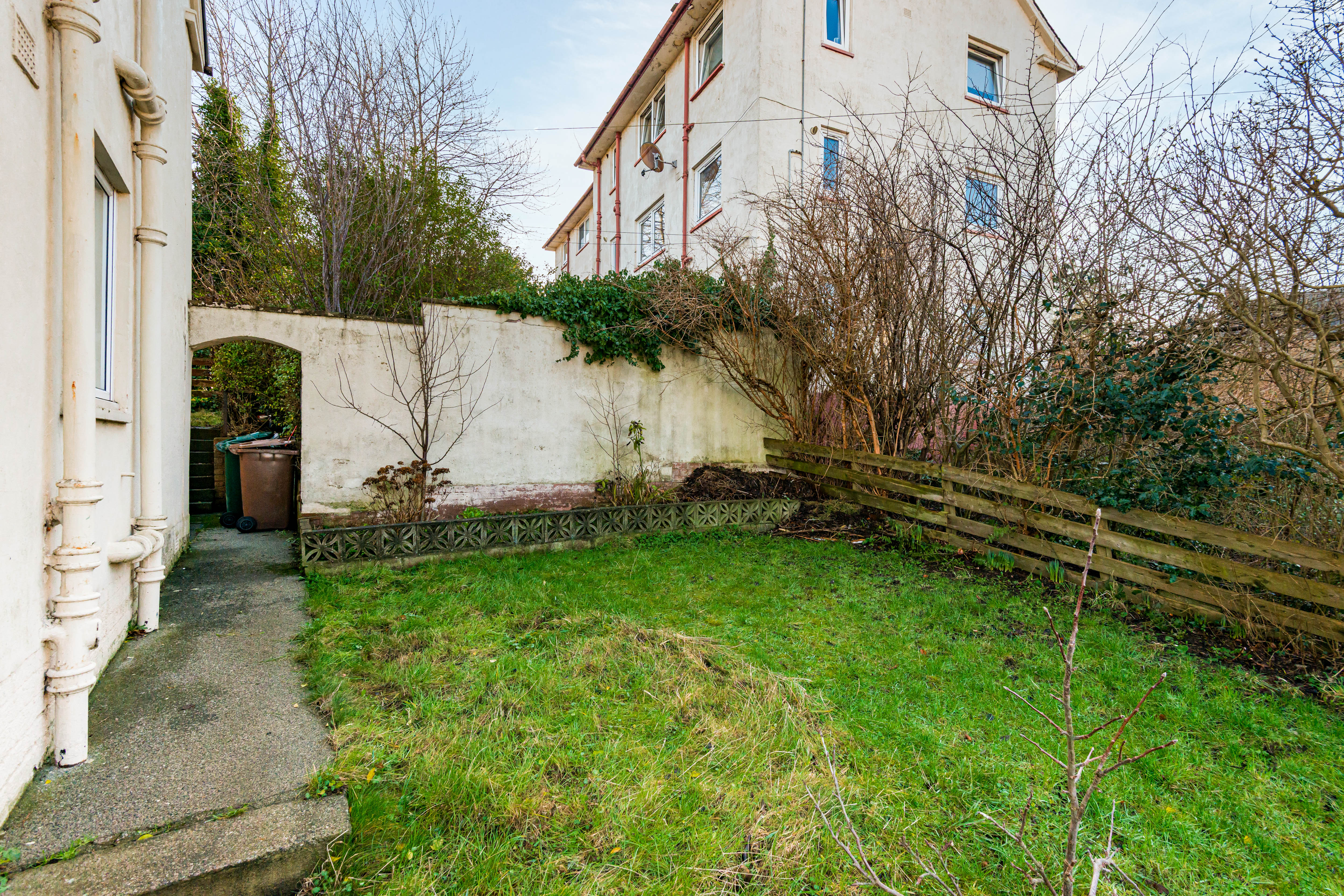 There are two good sized double bedrooms and a family bathroom with three-piece white suite including WC, wash hand basin and wall-mounted electric shower over the bath. Within the property are three storage cupboards. Heating and hot water is provided by gas central heating and there is double glazing.