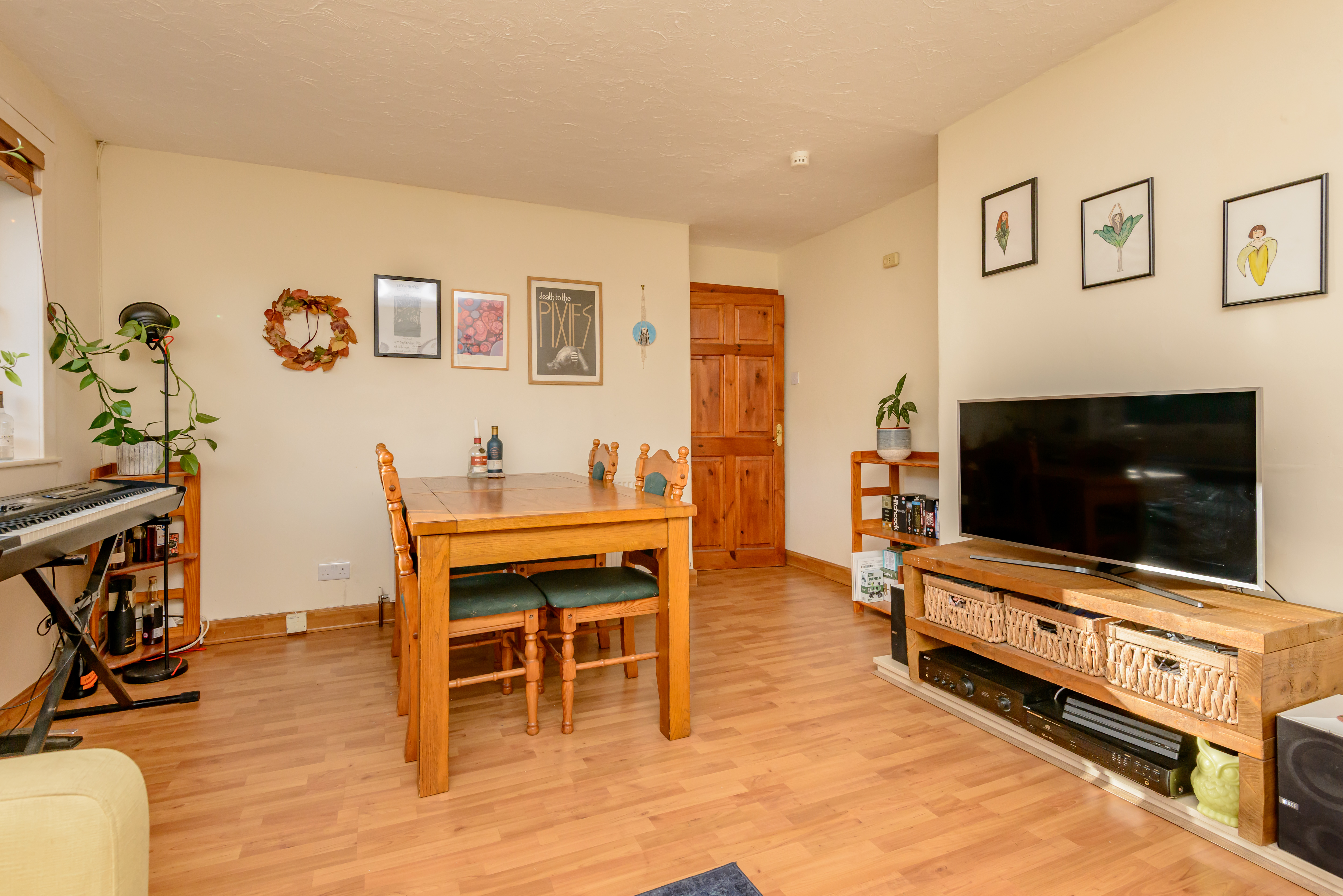 The sitting room/dining room has a south facing aspect and is bright and well-proportioned, with ample space for both a lounge area and dining area. Practical laminate flooring is underfoot.