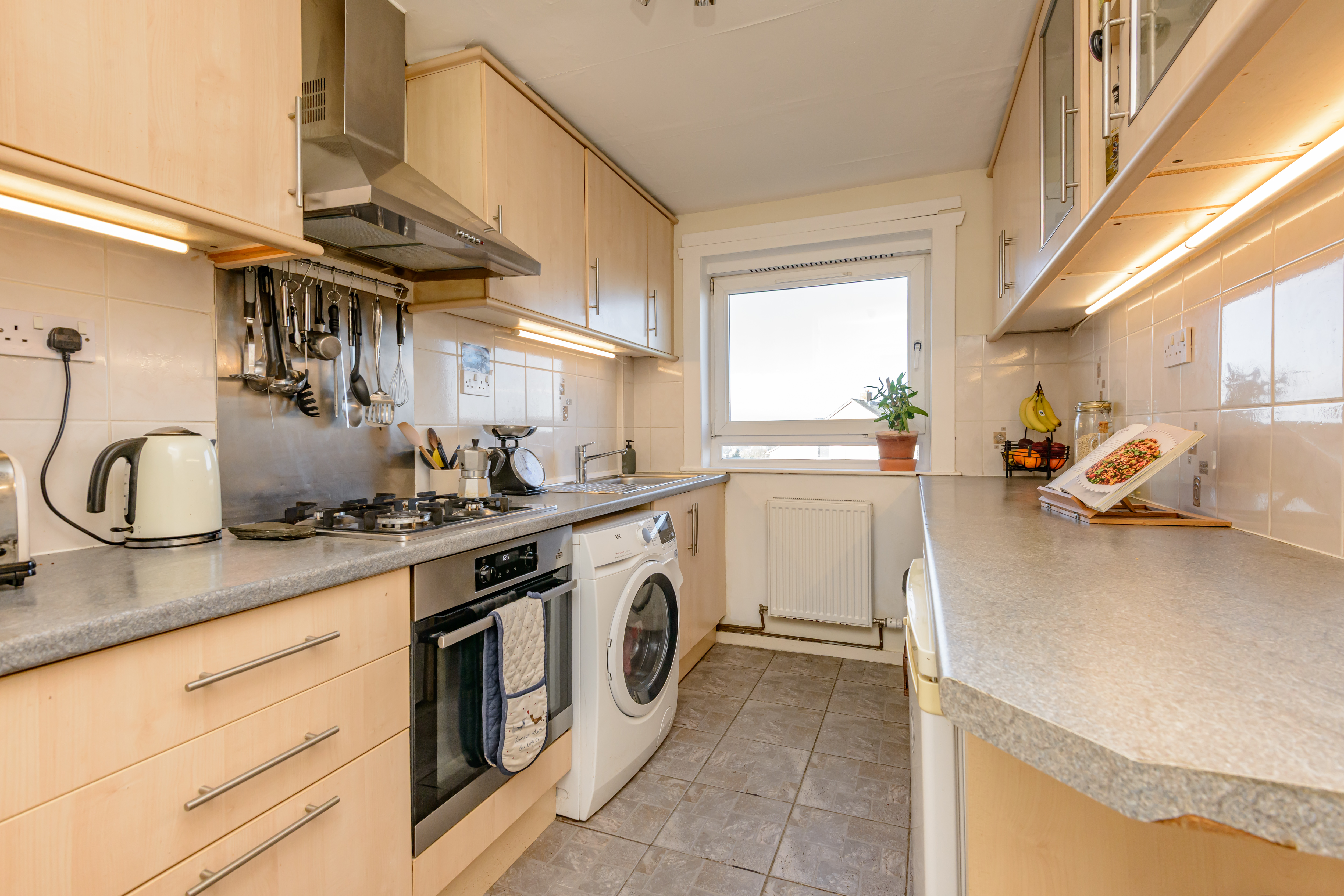 All blinds, light fittings, fitted flooring and white goods are included in the sale price.