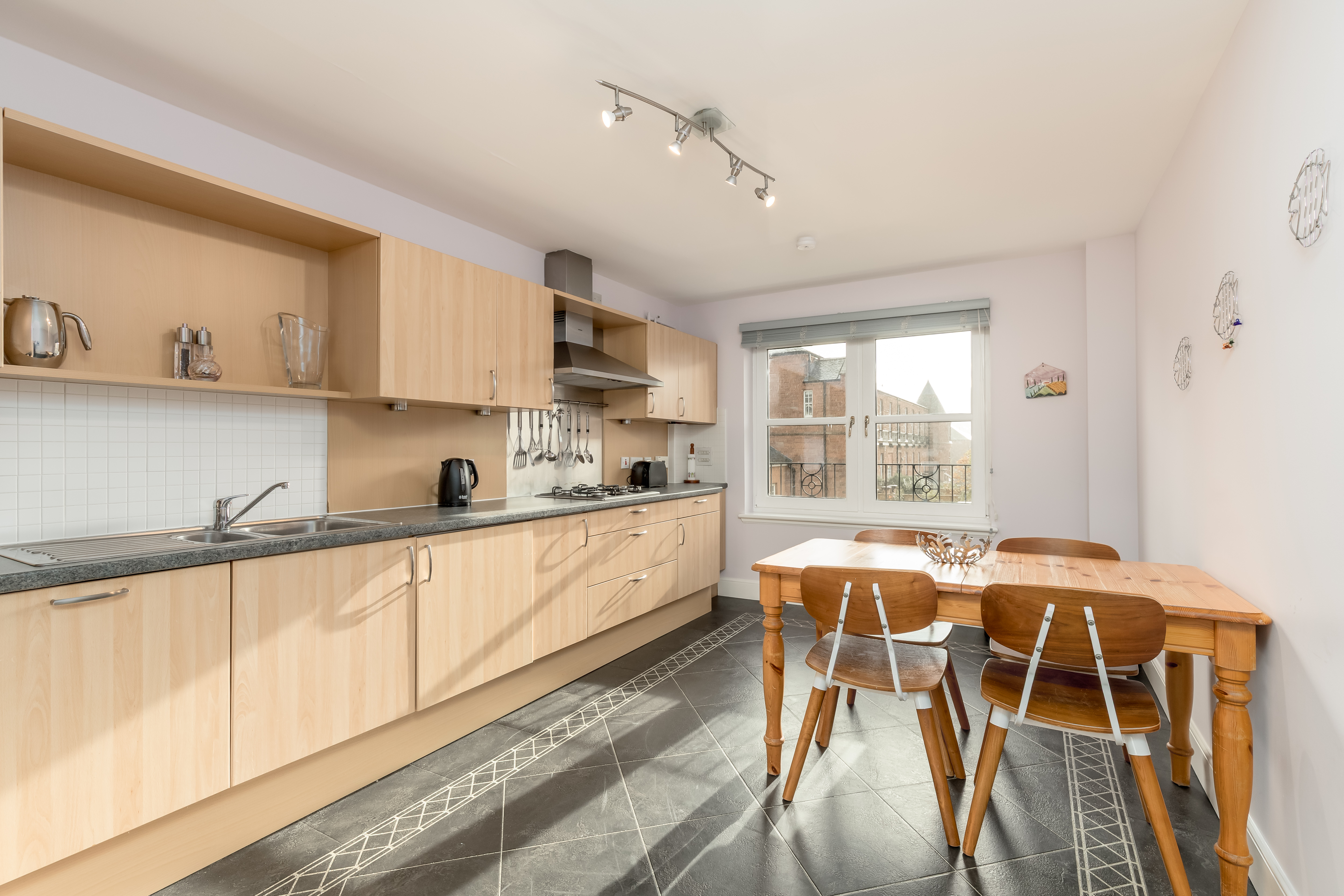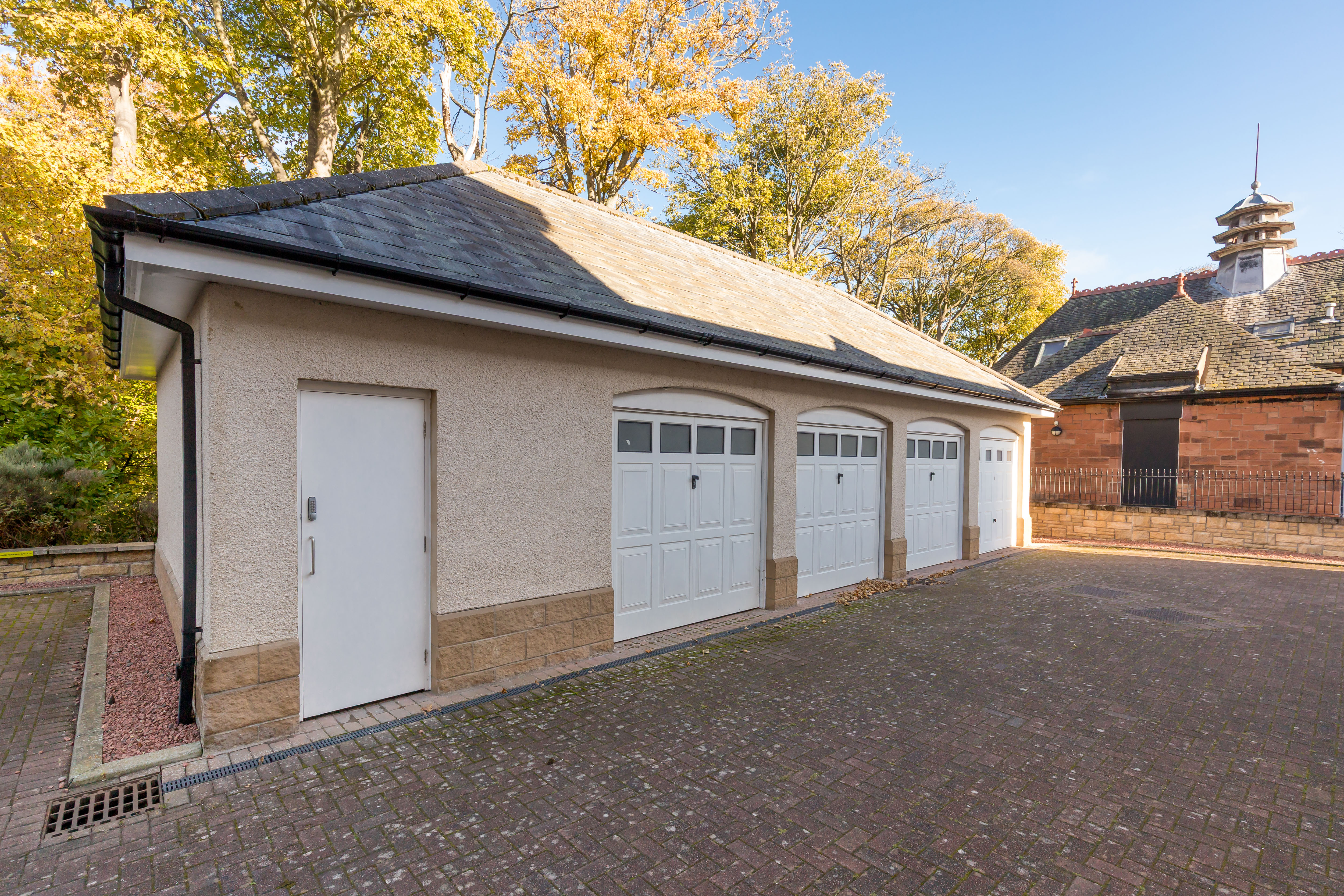 Externally, the flat has a private, single garage located within a block to the rear of the building where there is also a secure bike store. The garage has light, power and built-in shelving. The communal grounds are well maintained by the factor.