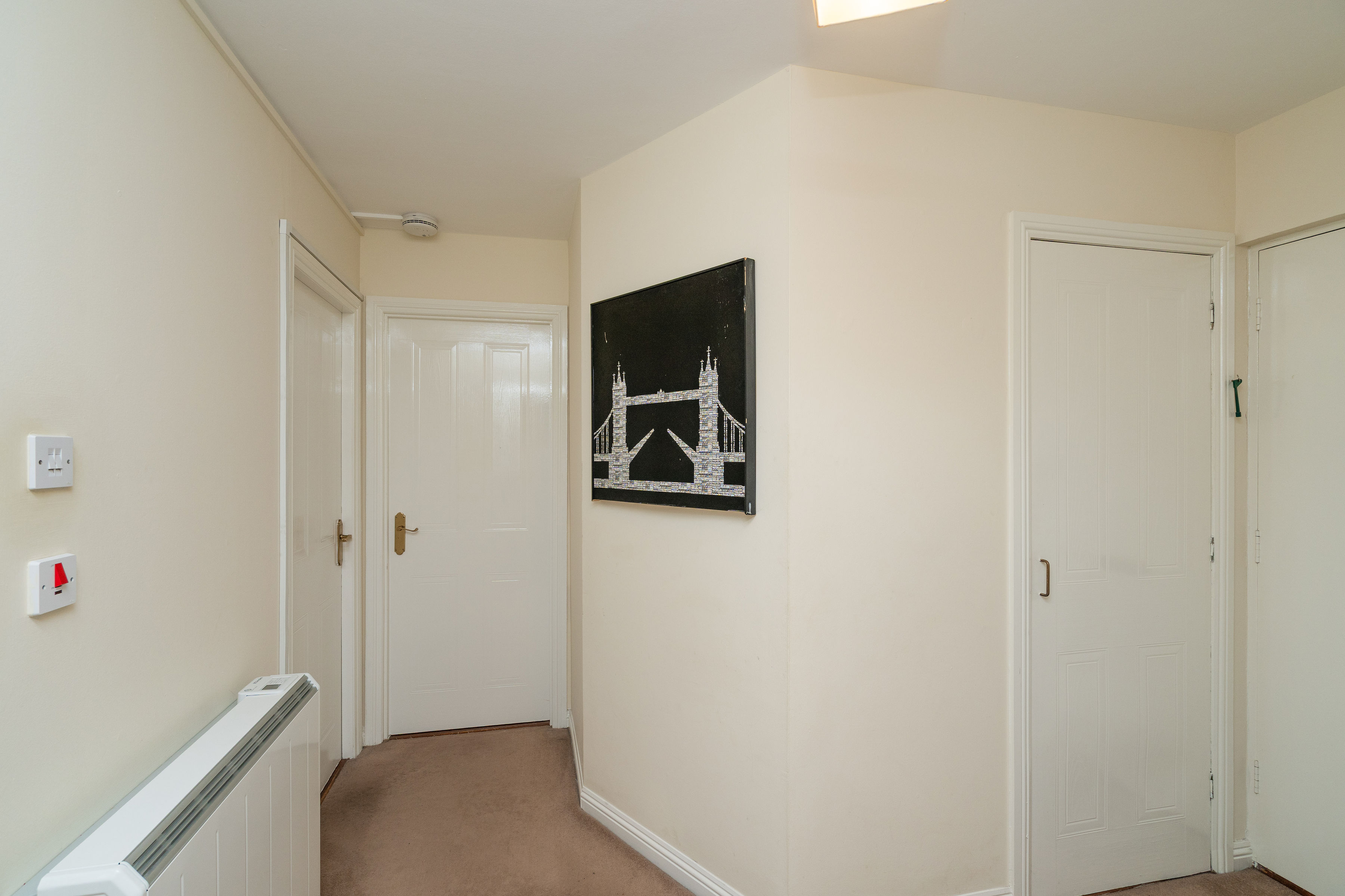Accessed via a secure communal entrance, the accommodation comprises a bright and spacious living room, ideal for both everyday living and entertaining. The kitchen is well appointed, offering ample storage and worktop space and has space for dining. Two generously sized double bedrooms provide comfortable and peaceful accommodation, while the three-piece partially tiled bathroom completes the internal layout.