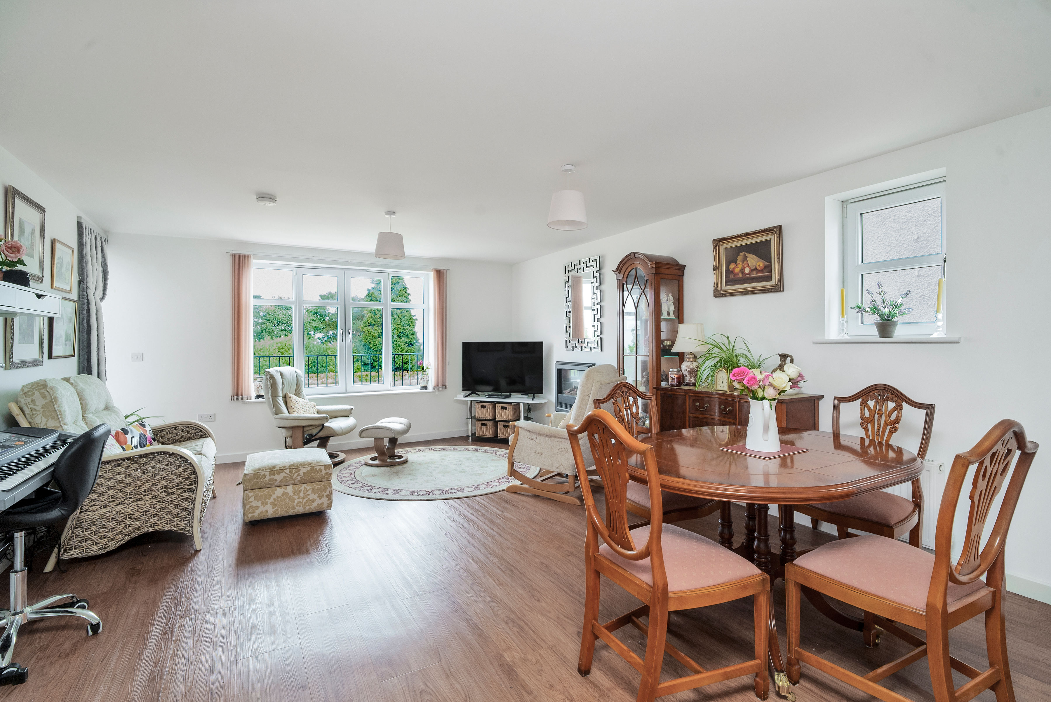 The property boasts an open-plan kitchen, dining, and sitting room area, ideal for both relaxing and entertaining, with direct access to a private balcony – perfect for enjoying your morning coffee or evening glass of wine.