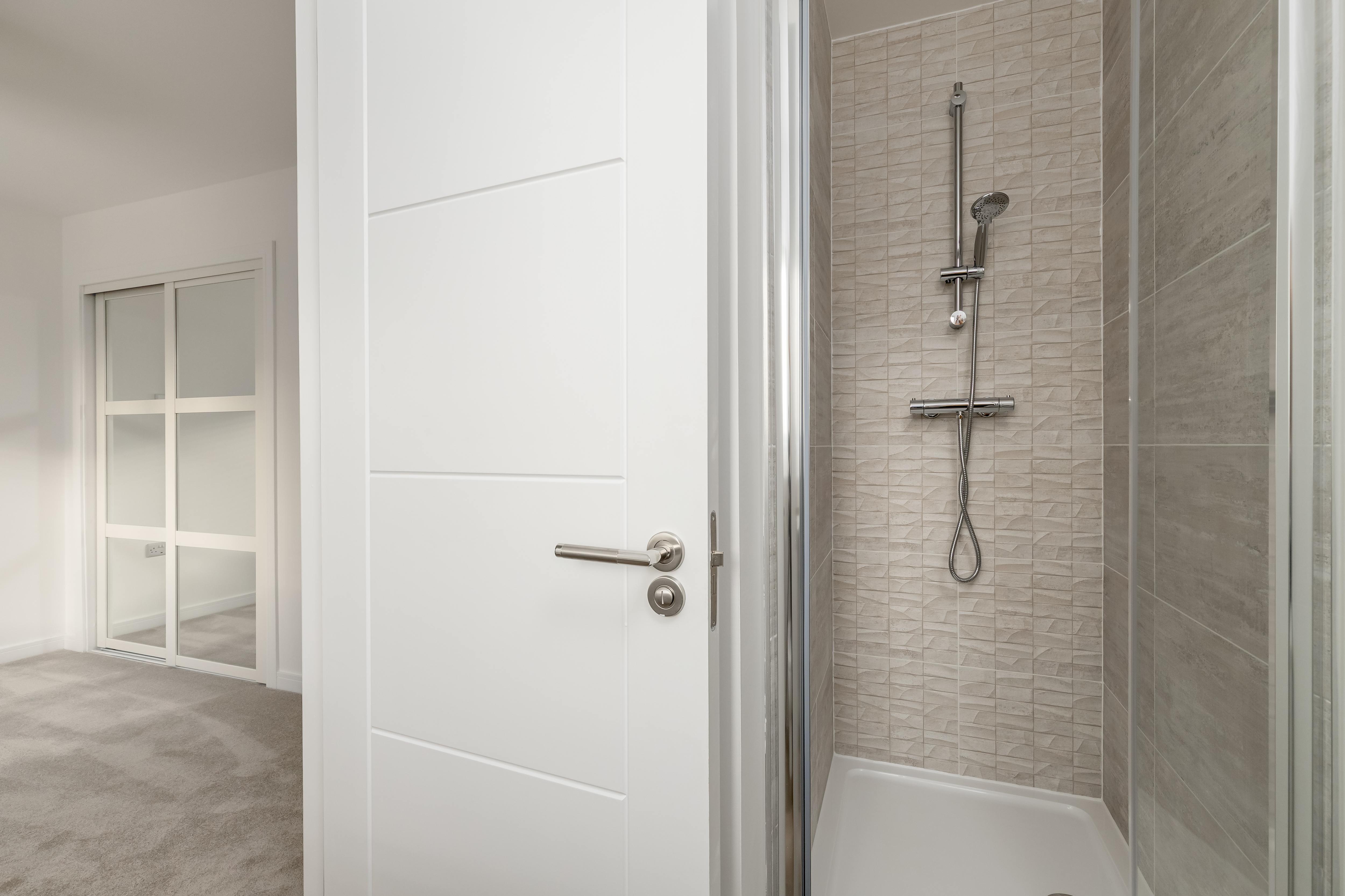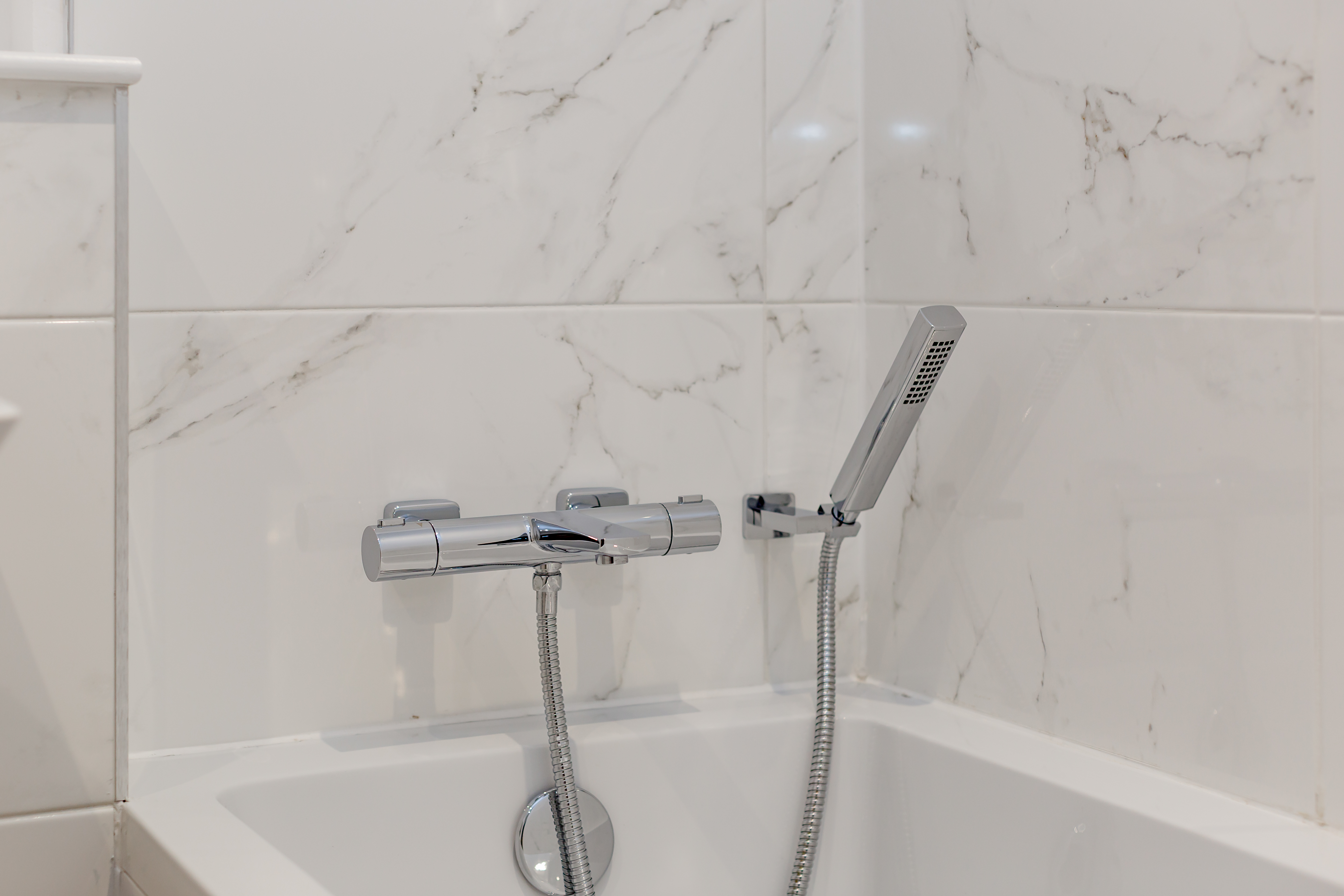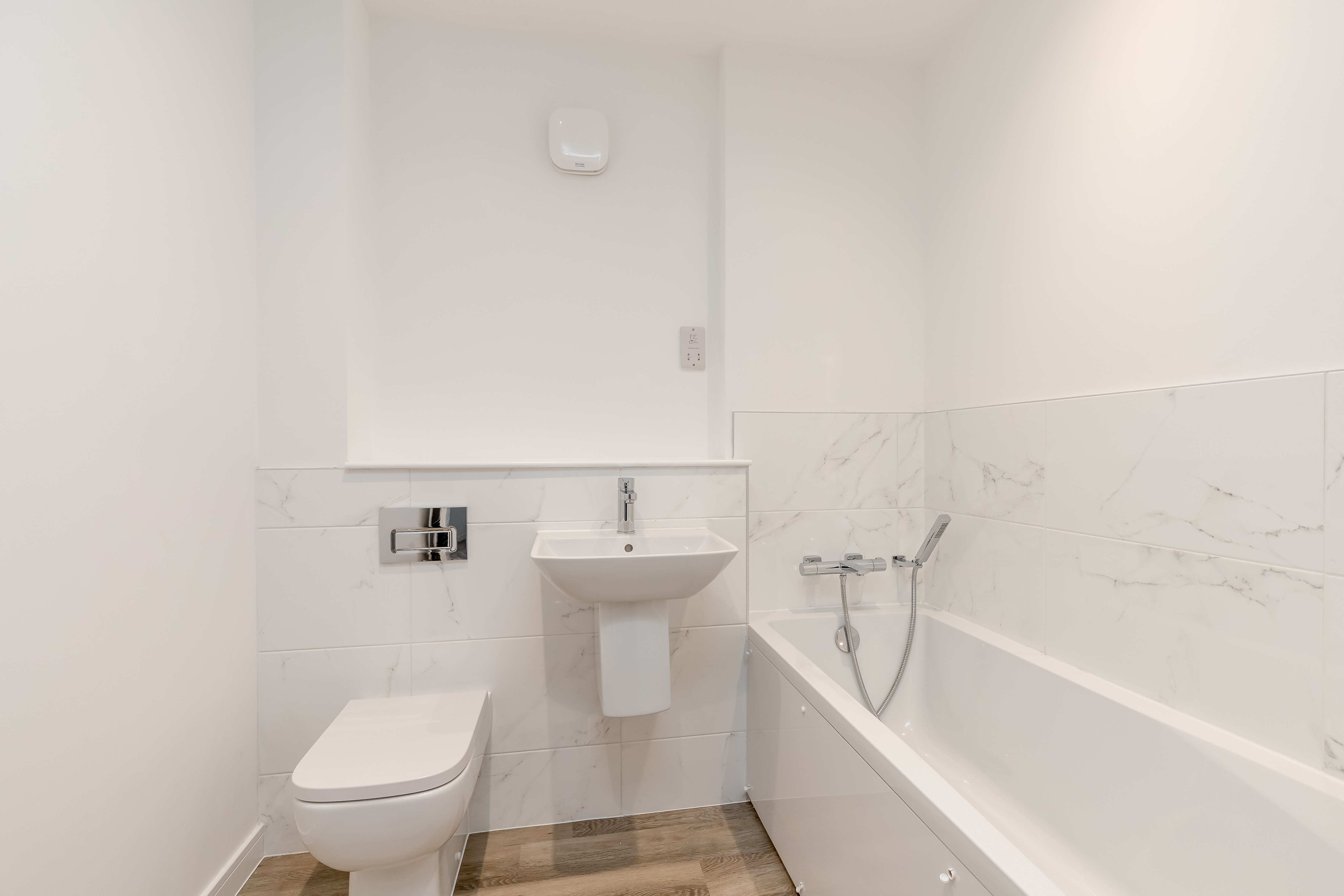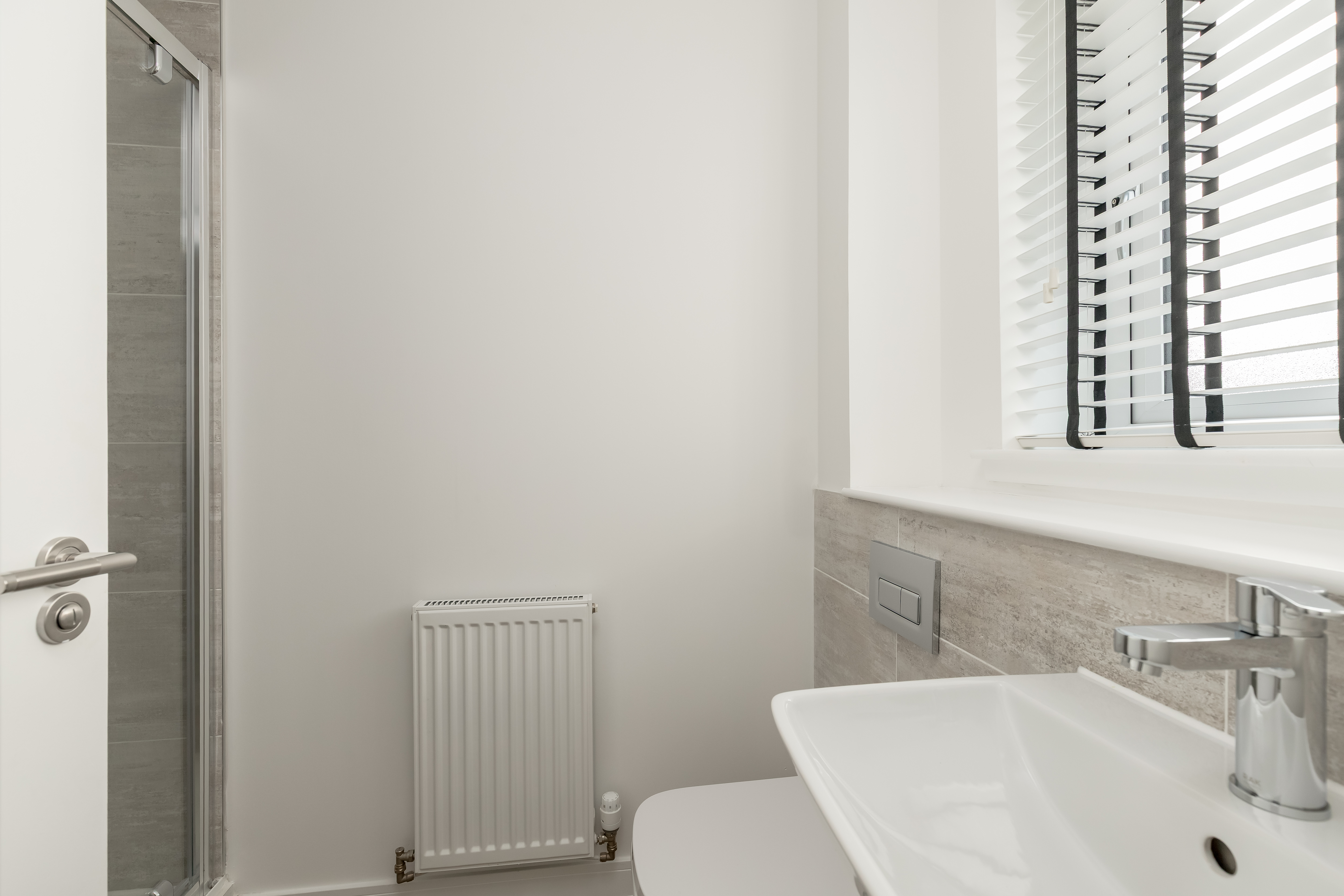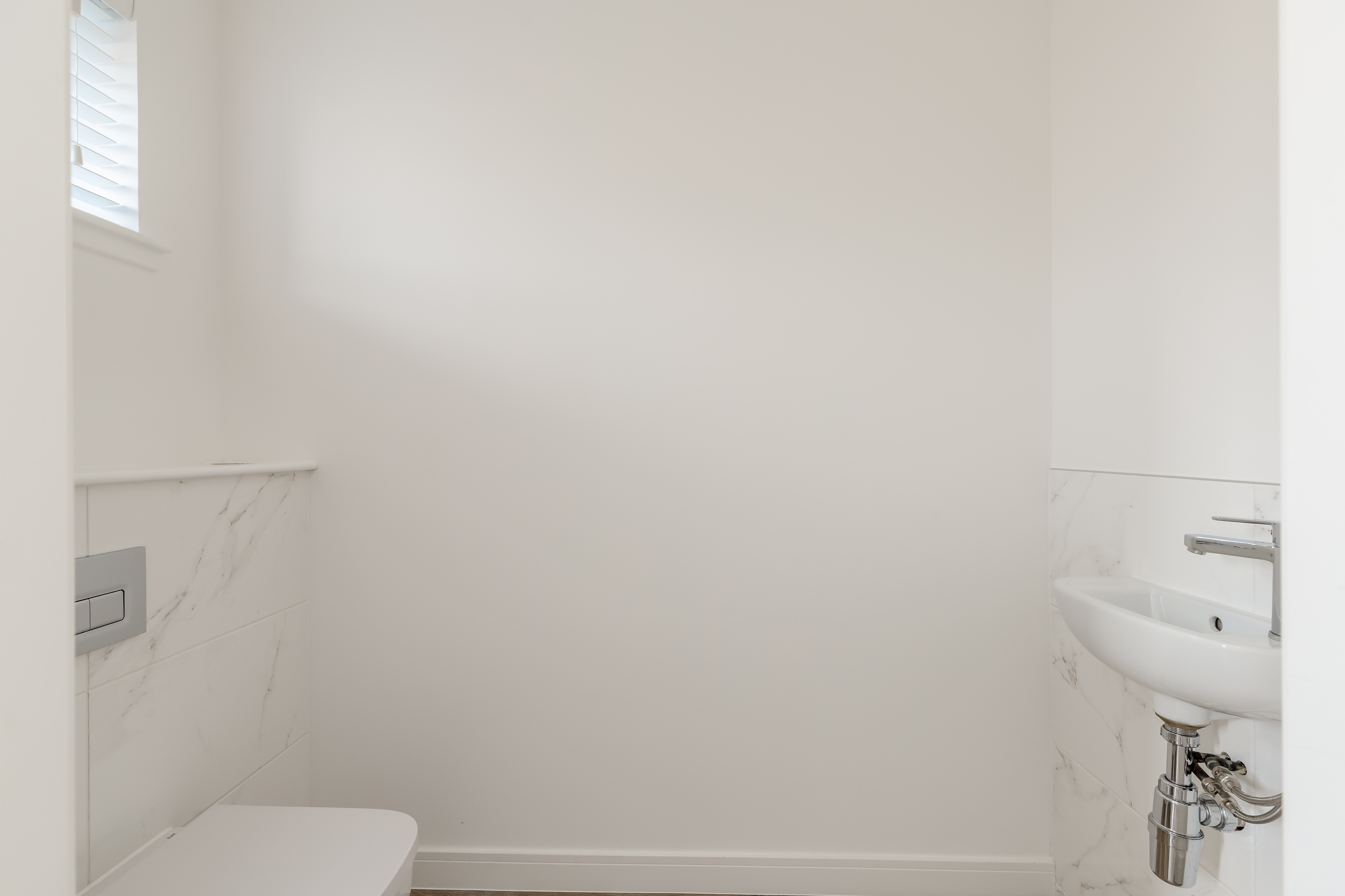 The WC, bathroom and en-suite feature designer sanitaryware from the award-winning RAK Ceramics complimented by a selection of larger profile Porcelanosa ceramic tiling.